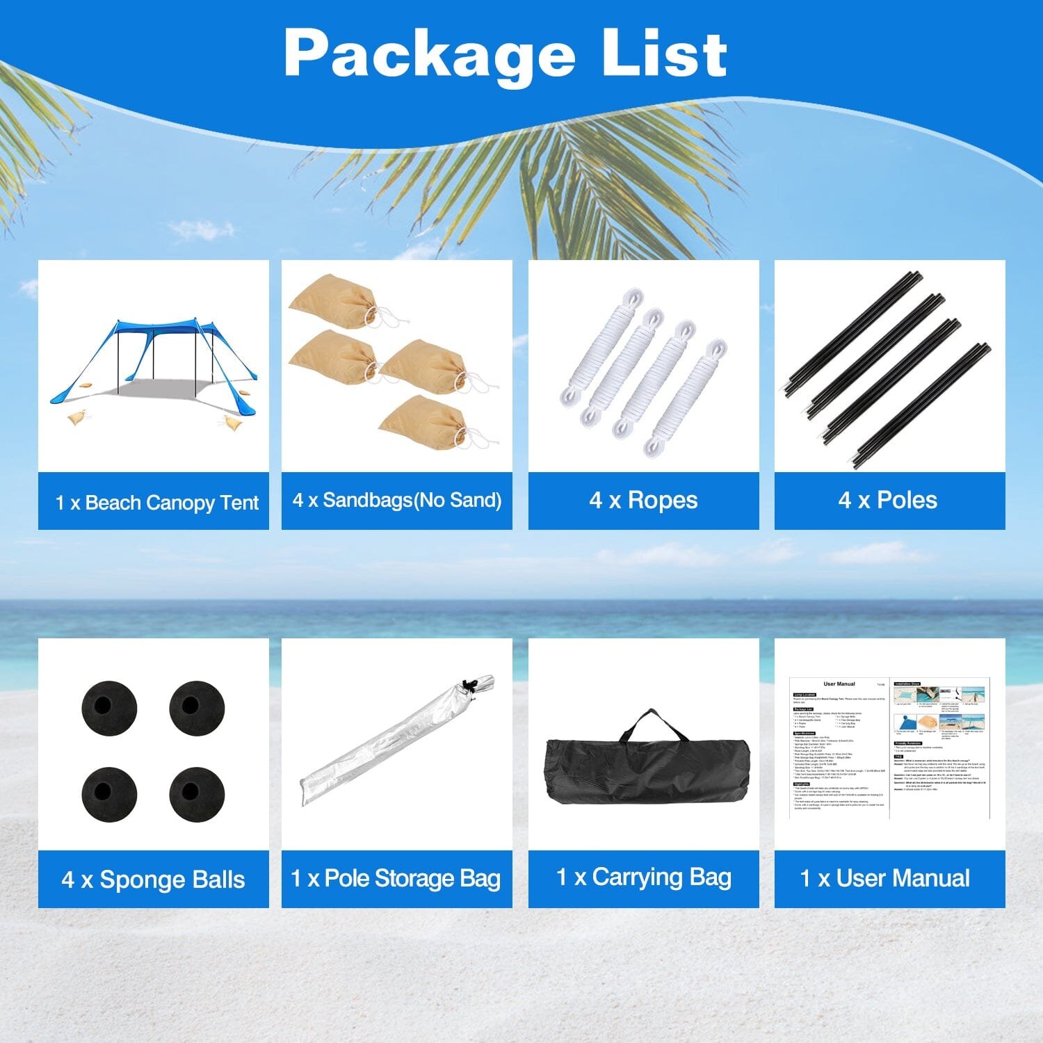 - Easy Installation & Multiple Setup Ways: Simply open the tent cloth and install the pole and fill the sand to finish quick setup. You can also move the sandbags or adjust the position of the poles to change the angle of the shade. get the perfect shelter from the sun and keep enjoying the beach to meet all your needs!