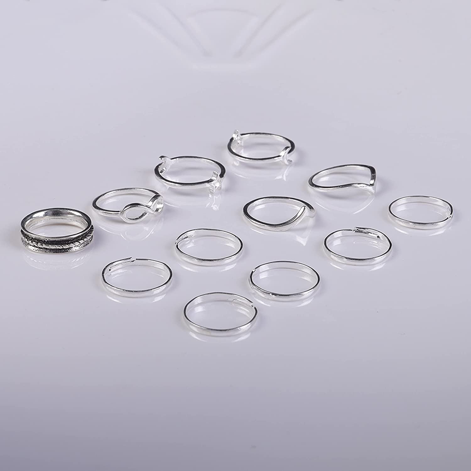 12-Pieces Set: Silver Rings for Teen