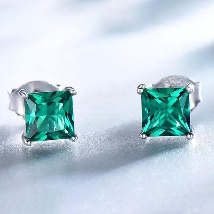 15 omtaler for 2.00 CTTW Sterling Silver Emerald Princess Cut Studs