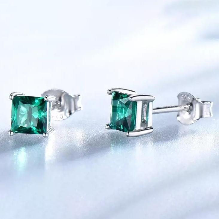2.00 CTTW Sterling Silver Emerald Princess Cut Studs