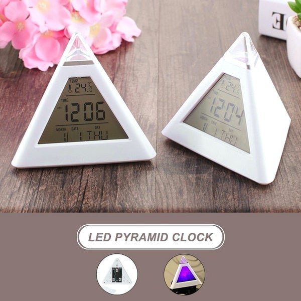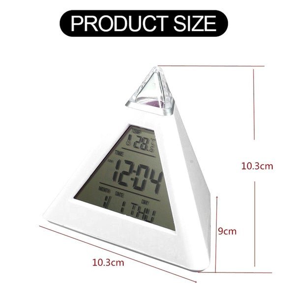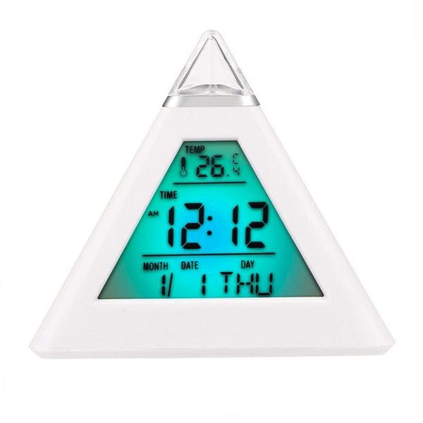 7 Colors Changing LED Alarm Clock Multifunction Temperature Snooze Digital Alarm Clock Creative Pyramid Shape 7 Color Color LED Alarm Clock.