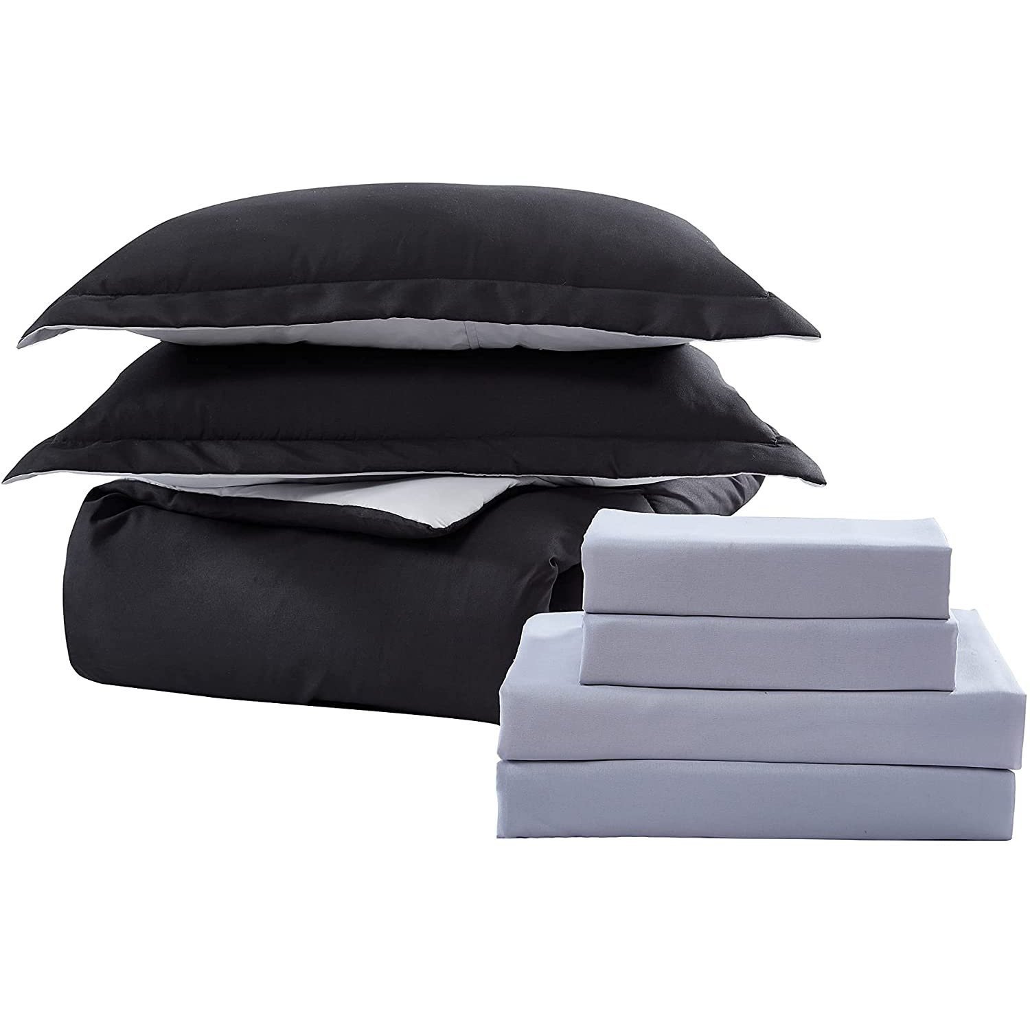 - 1 Comforter. 2 Shams. 1 Flat Sheet. 1 Fitted Sheet. 2 Pillow Cases