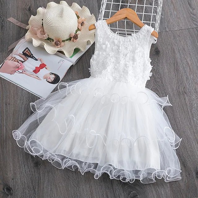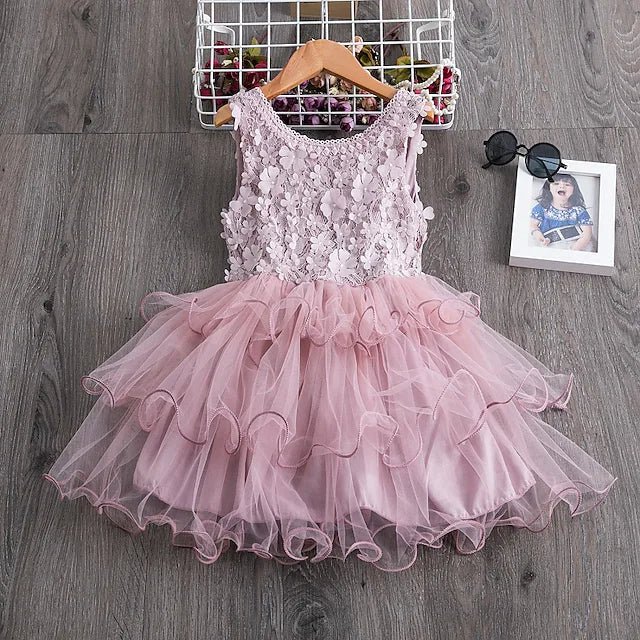 Kids Little Girls» Dress Flower Party Wedding Ruffle Tutu Mesh Embroidered Knee-length Sleeveless Elegant Princess Dresses.