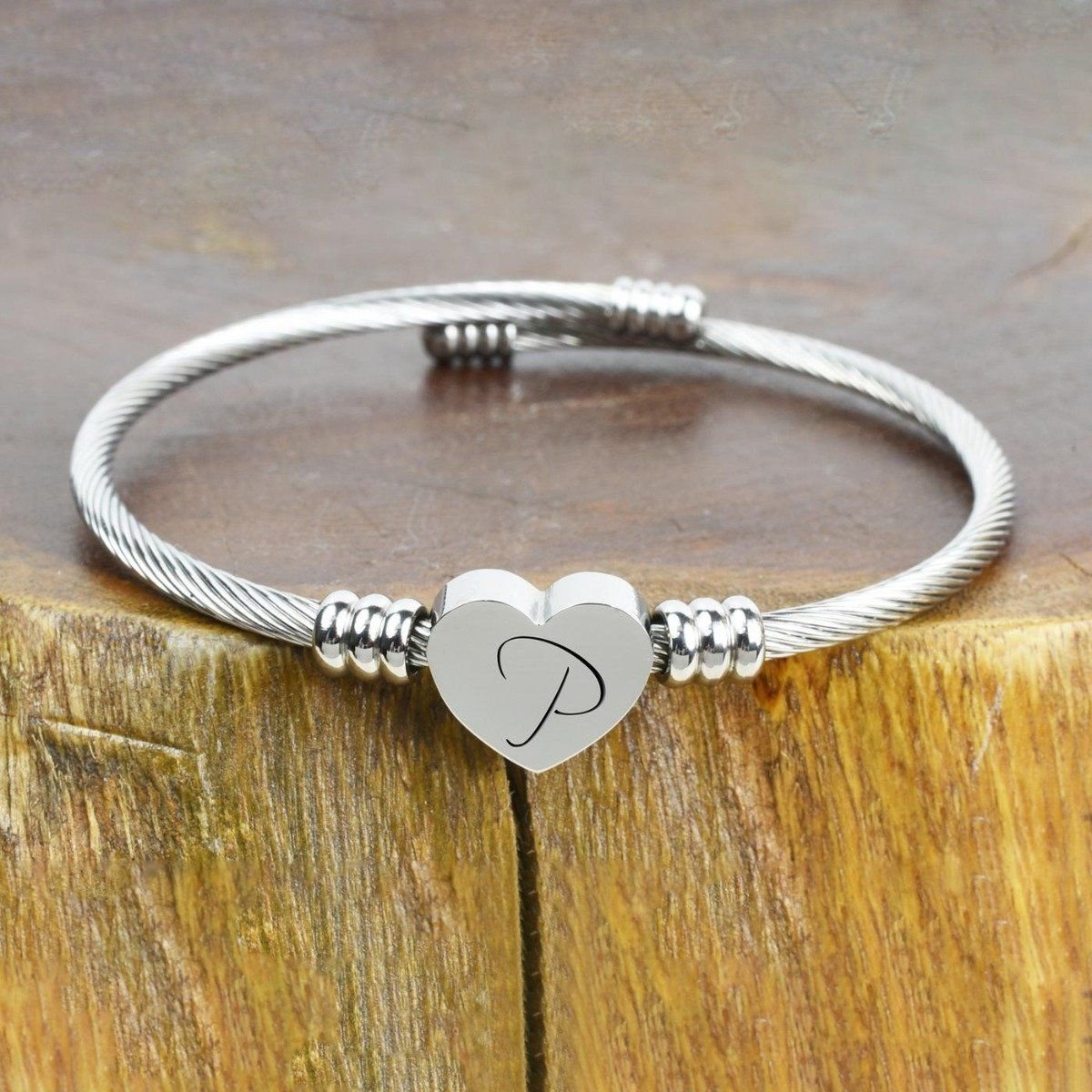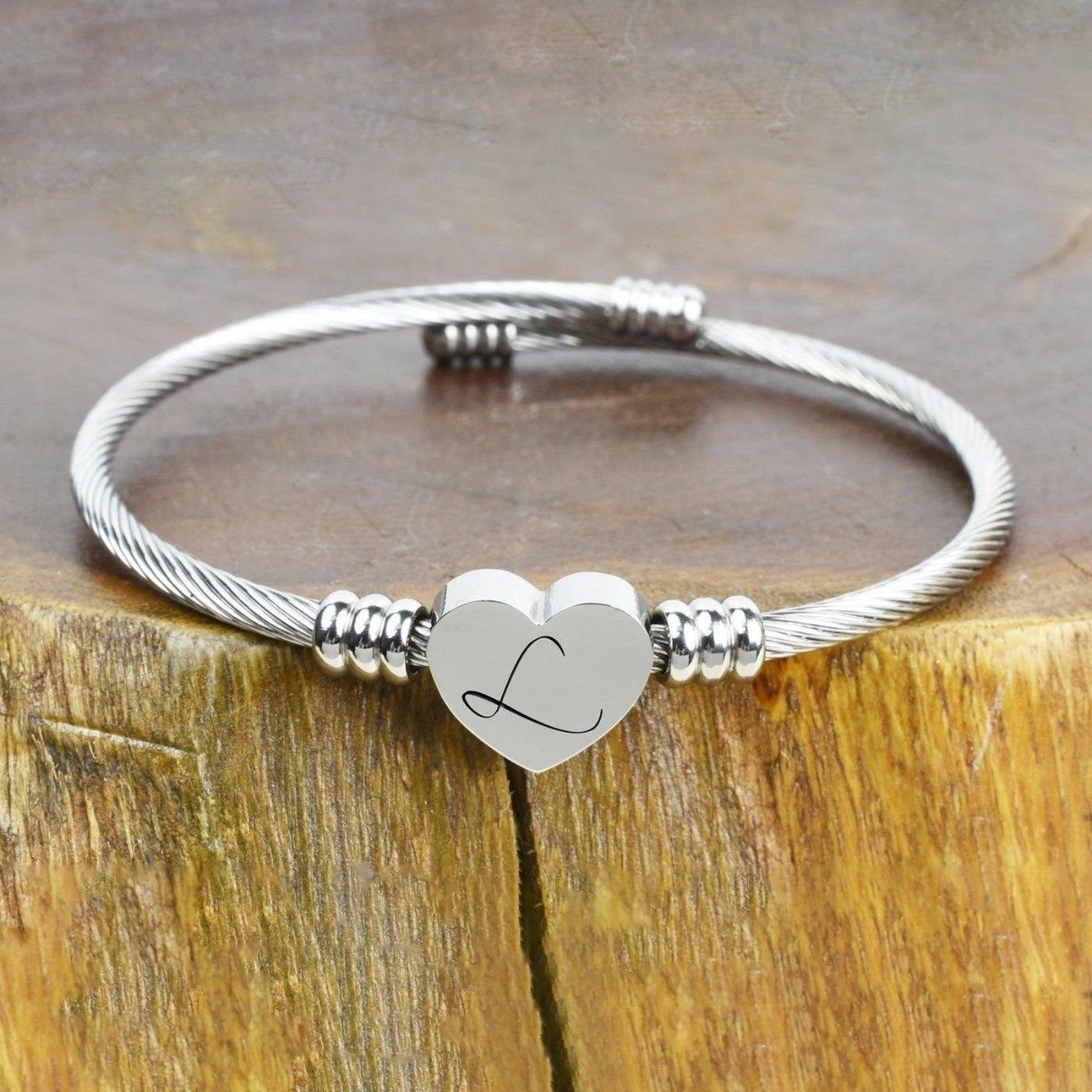 - Heart cable initial bracelet
