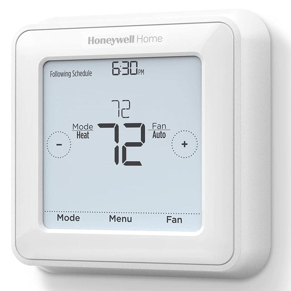 Keep your home at just the right temperature with the Honeywell Home T5 Touchscreen 7-Day Programmable Thermostat. Choose battery-powered or hard-wired operation. Your settings stay safe with the permanent day and time backup. The advanced design provides maximum comfort by sensing whether your home needs heating or cooling. It is packed with features and options yet easy to program. with a contemporary design and an extra-large. backlit touchscreen display.