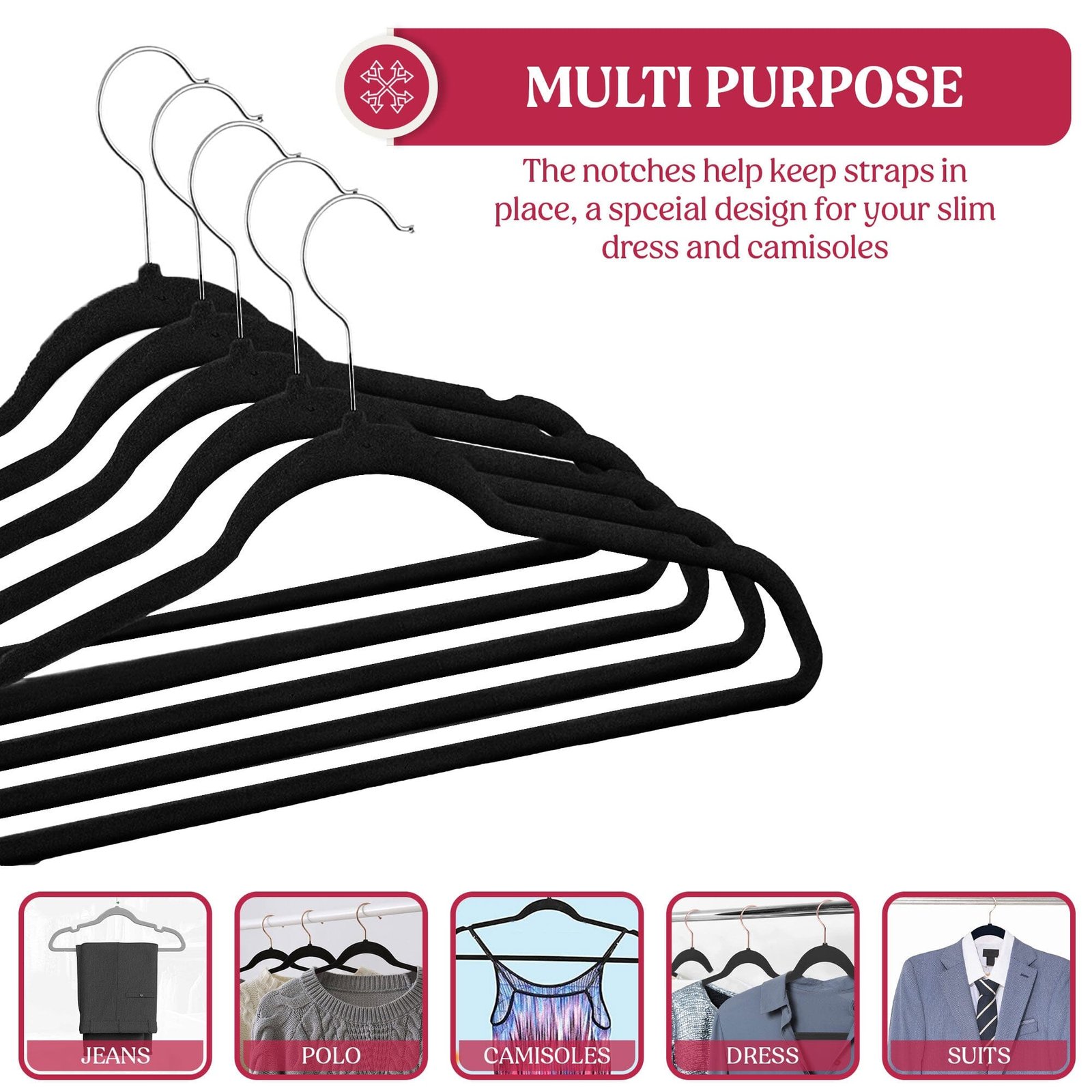 - Stylish Finishes: Unlike plastic or metal hangers. soft and luscious velvet is safe for skin and clothing. All of our velvet hangers are made from the finest material. which prevents lint from dropping off and spoiling your clothes. It also prevents clothing from slipping as the surface is velvet coated.