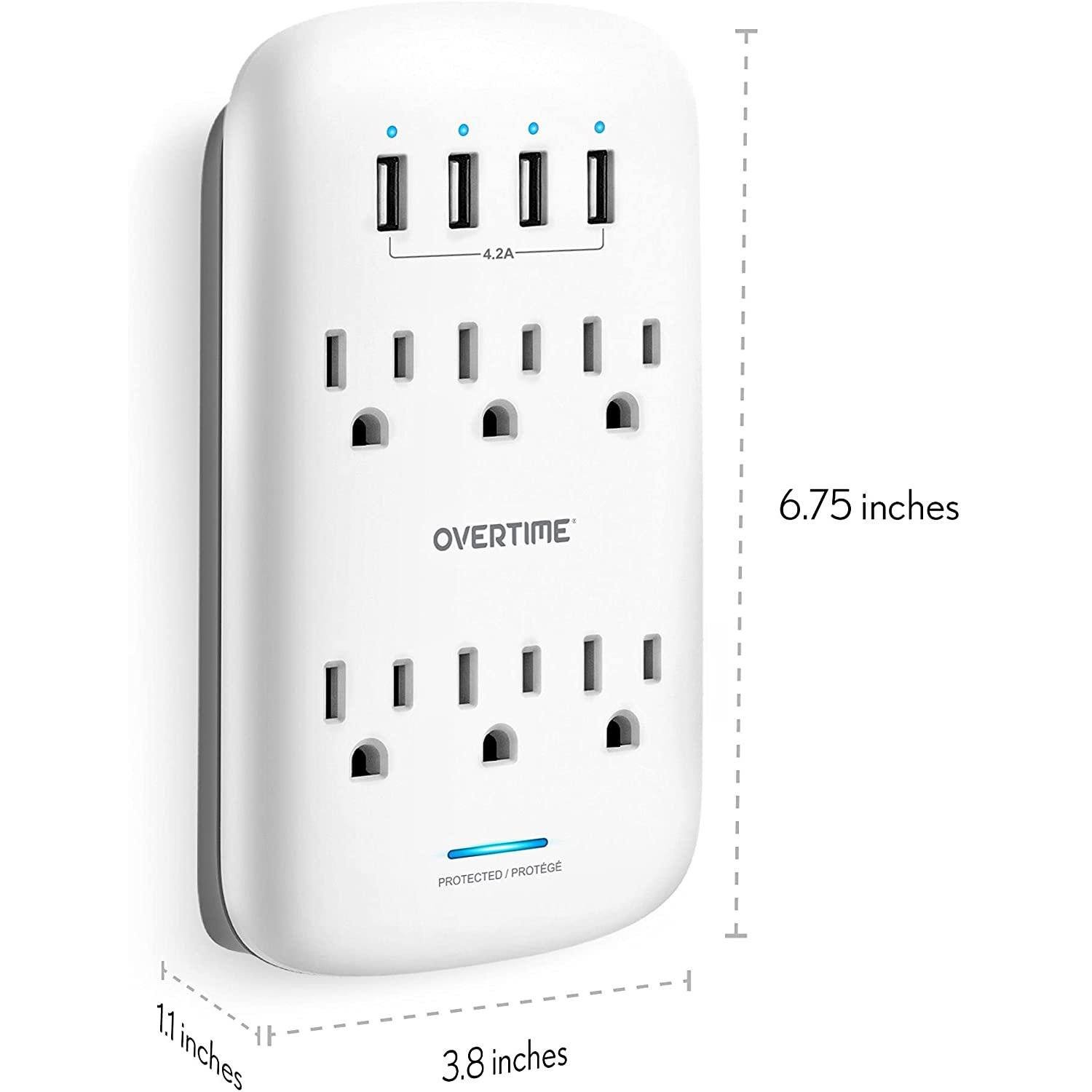 This multi-plug wall outlet can be easily plugged into any AC wall outlet. instantly transforming one wall socket into four USB Type-A ports as well as six AC outlets. Our electrical outlet extender is also incredibly small and compact. sitting right up against your wall so that it doesn’t take up any extra space or lay across the ground and becoming a possible tripping hazard like some wall outlet surge protectors. Providing numerous safety features such as surge protection. our wall outlet with USB ports is the ultimate space and outlet saving solution.