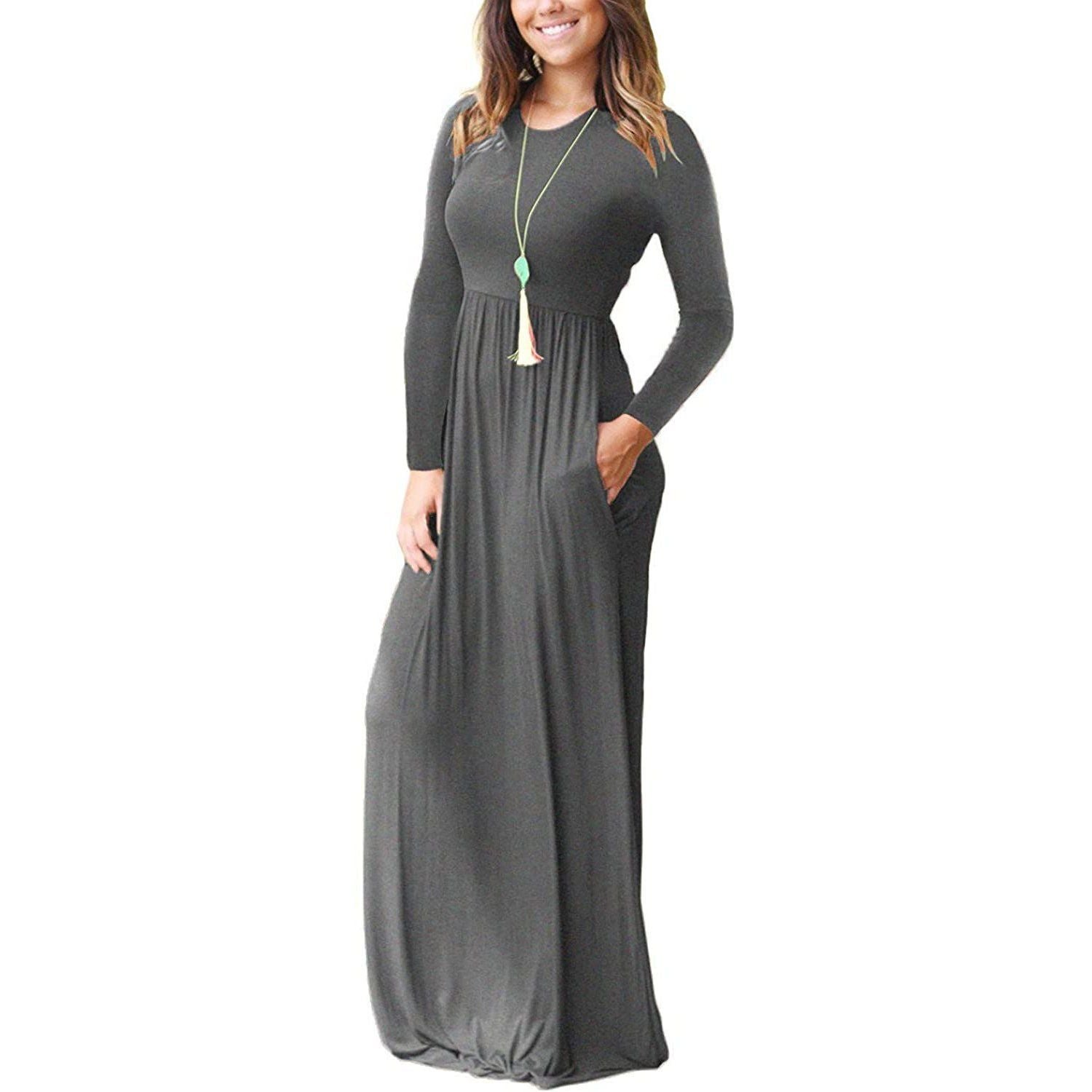 Women Long Sleeve Loose Plain Maxi Dresses Casual Long Dresses with Pockets