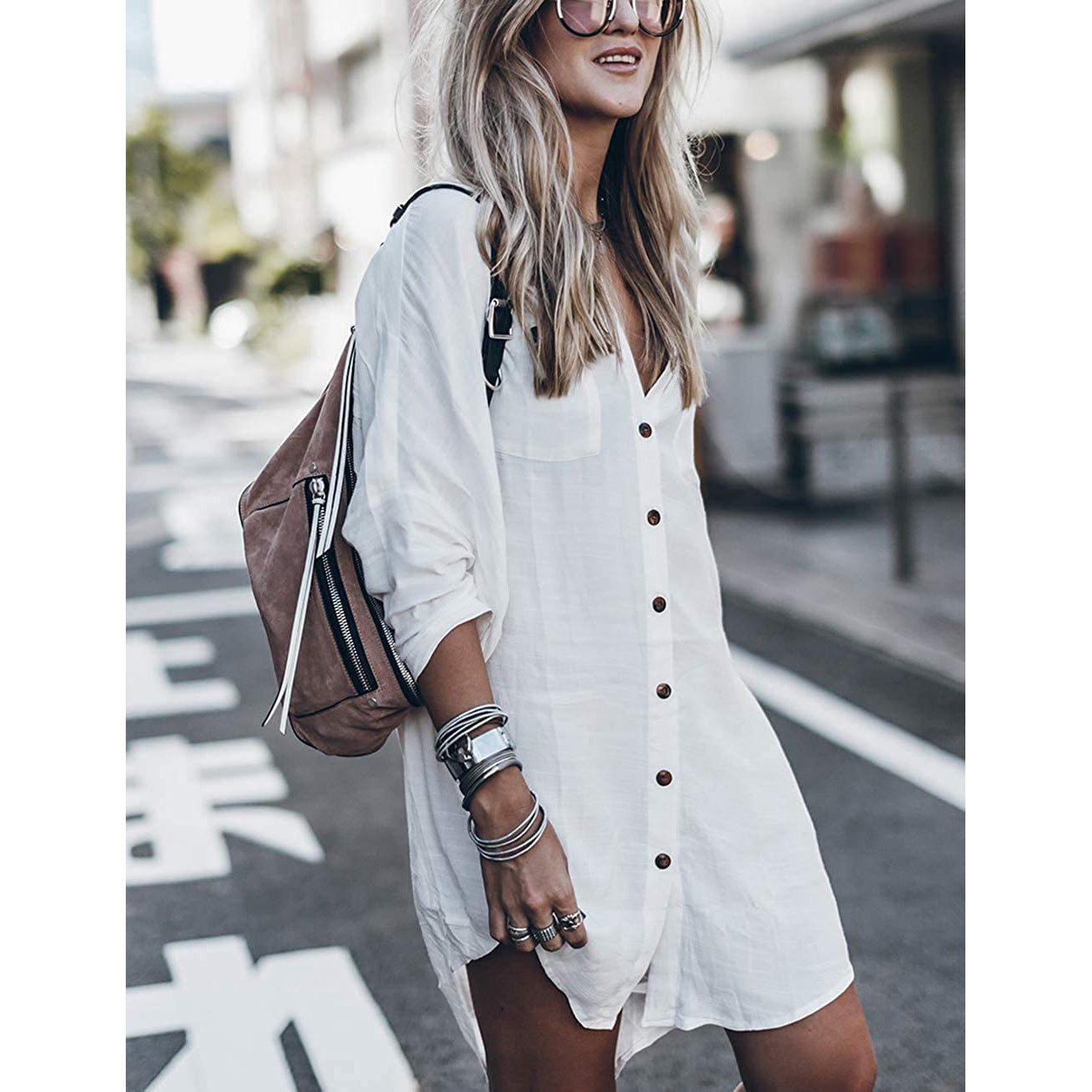 15 omtaler for Women Loose Long Sleeve Swimsuit Cover Ups Button Down Beach Shirt