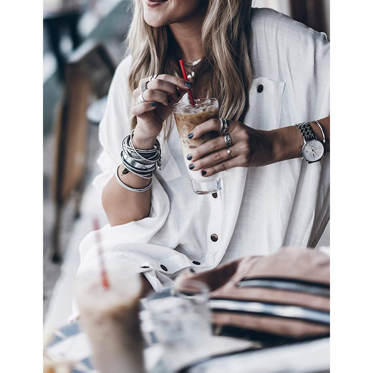 Long sleeve sunscreen cover up is made of rayon. It’s really simple and practical for you to have a trip. vacation. dating. or daily wear.