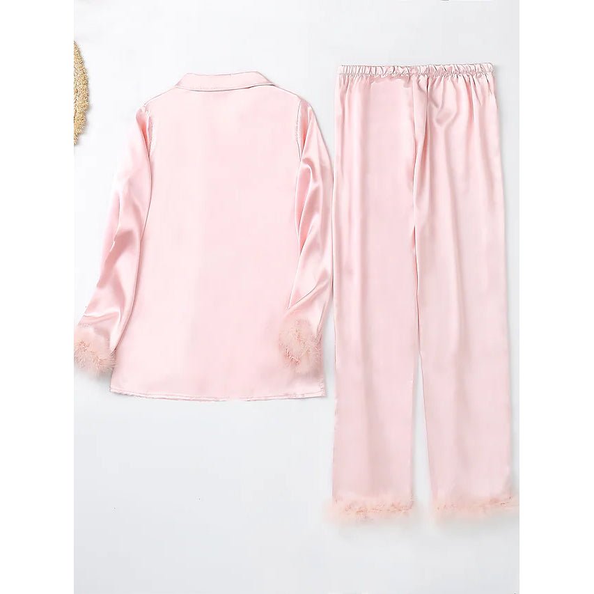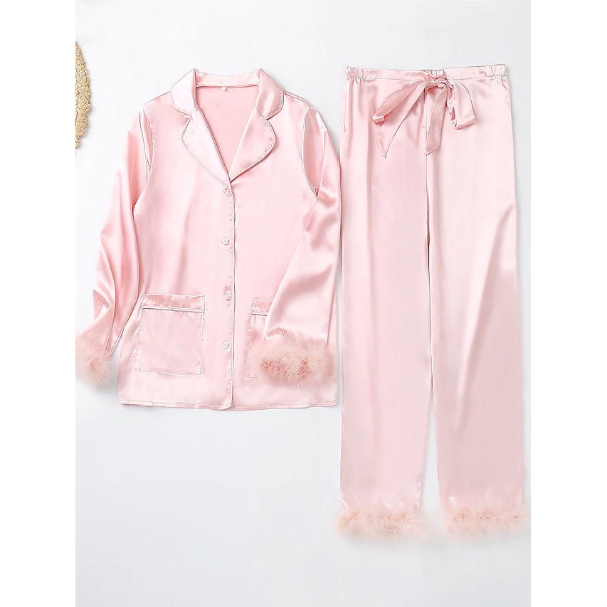 • Show-stopping women’s pajama set: This party pajama set with removable feathers detailing is designed to flatter from every angle. Feathery accents on the cuffs and trousers not just add a fashionable vibe. but it also makes it more comfortable to wear. Soft as women’s silk pajamas set.