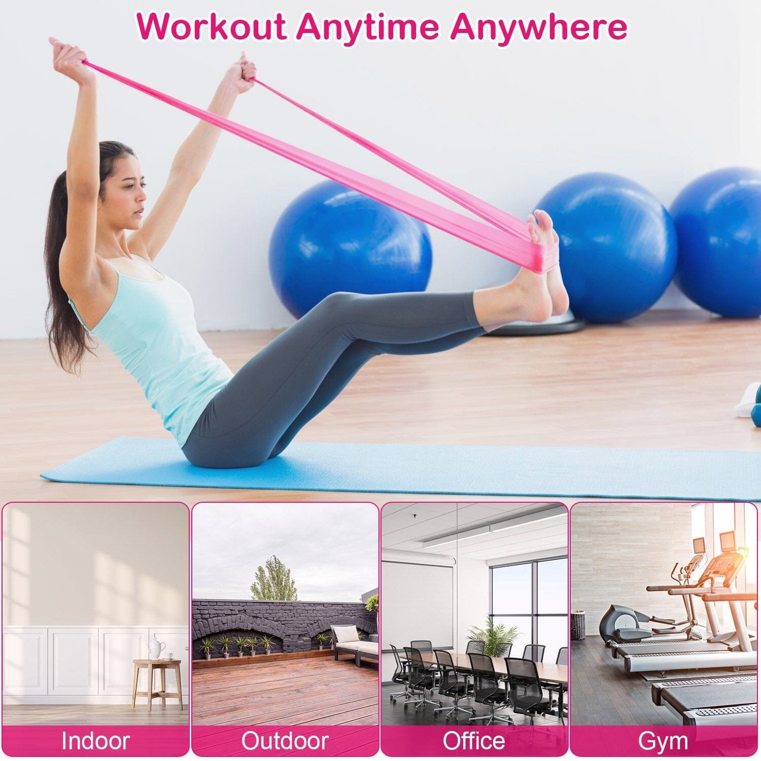 - 3x Yoga Bands(Pink. Blue. Green)
