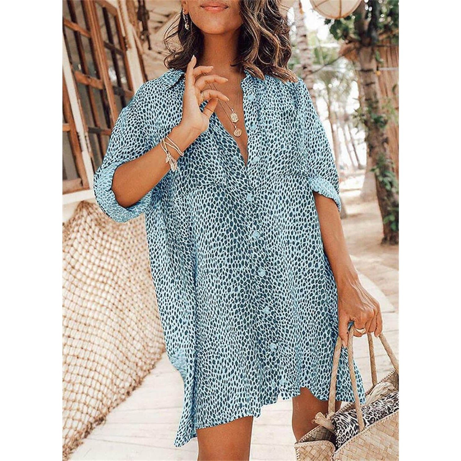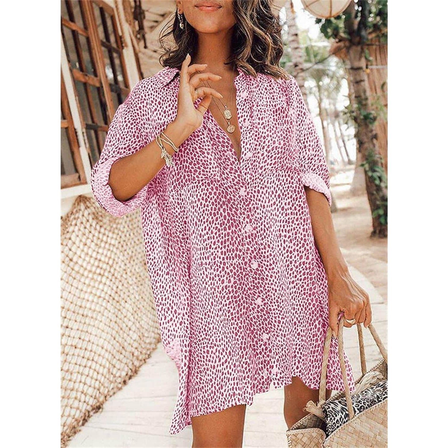 15 reviews for Women’s Casual Leopard Print Shirt Dress