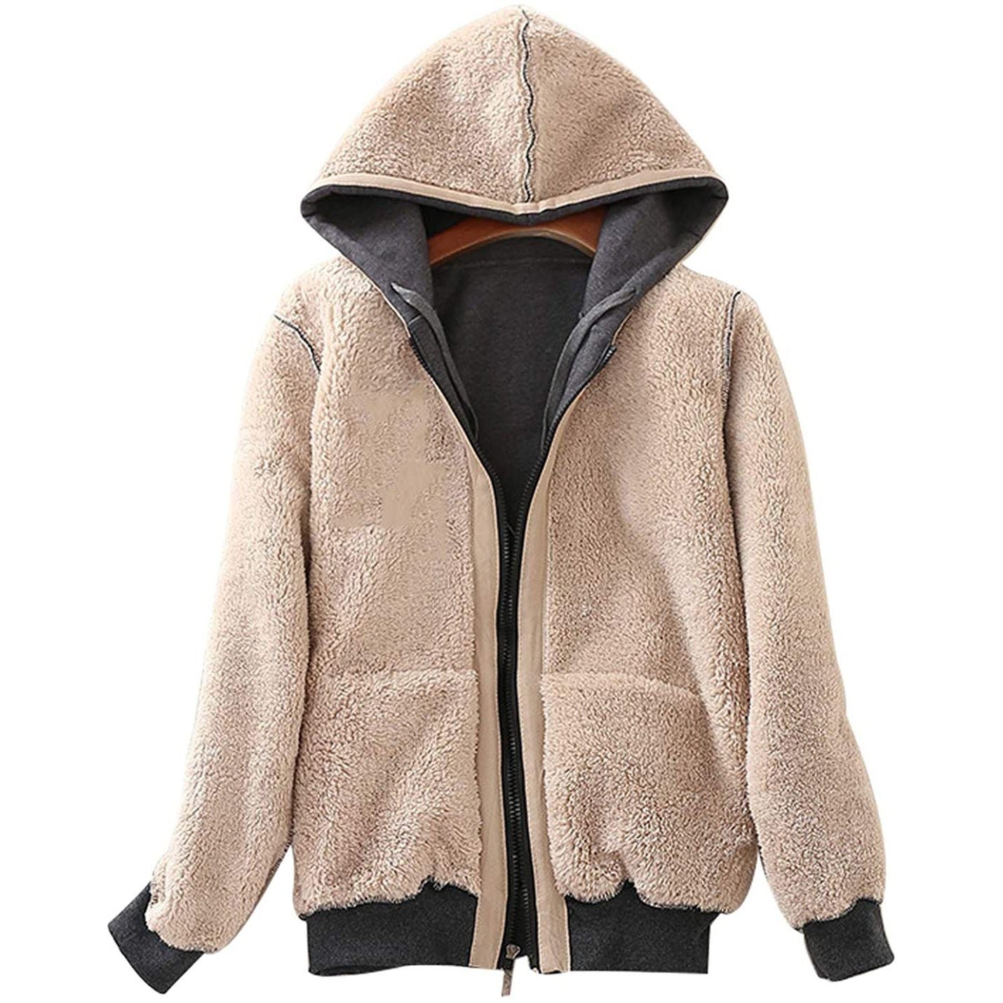Women’s Casual Winter Warm Sherpa Lined Zip Up Hooded Sweatshirt Jacket Coat.