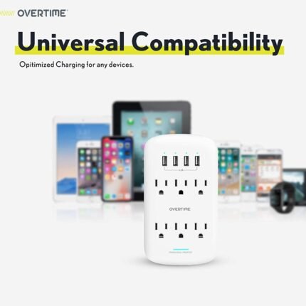 Socket Shelf 8 Port Surge Protector Wall Outlet, 6 Electrical Outlet Extenders, 2 USB Charging Ports