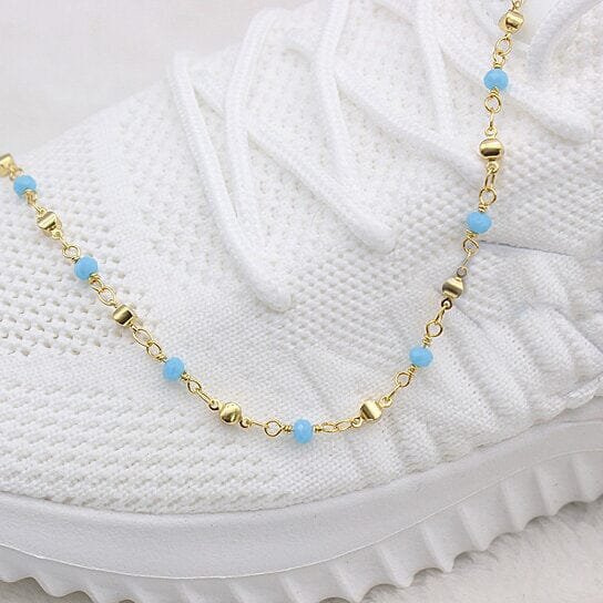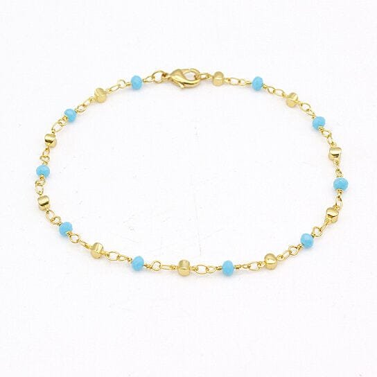 18k Gold Filled High Finish Polish Turquoise Ball Ankle Bracelet