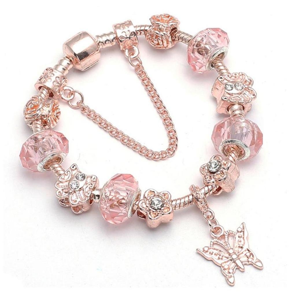 18K Rose Gold Plated Pink Crystal Butterfly Charm Bracelet w/ Swarovski Elements