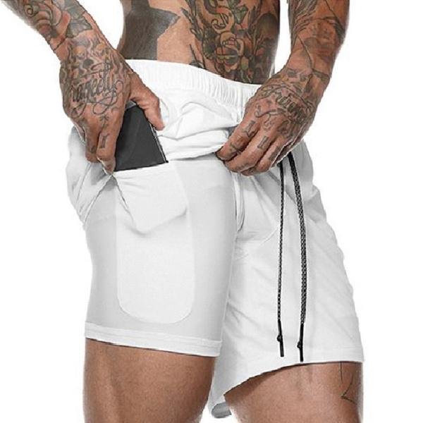 Fashion Men Elastic Waist Sports Shorts with Phone Pocket