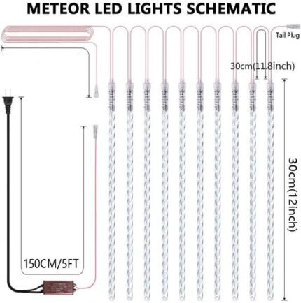 8-Pieces: Waterproof LED Meteor Shower Rain Lights