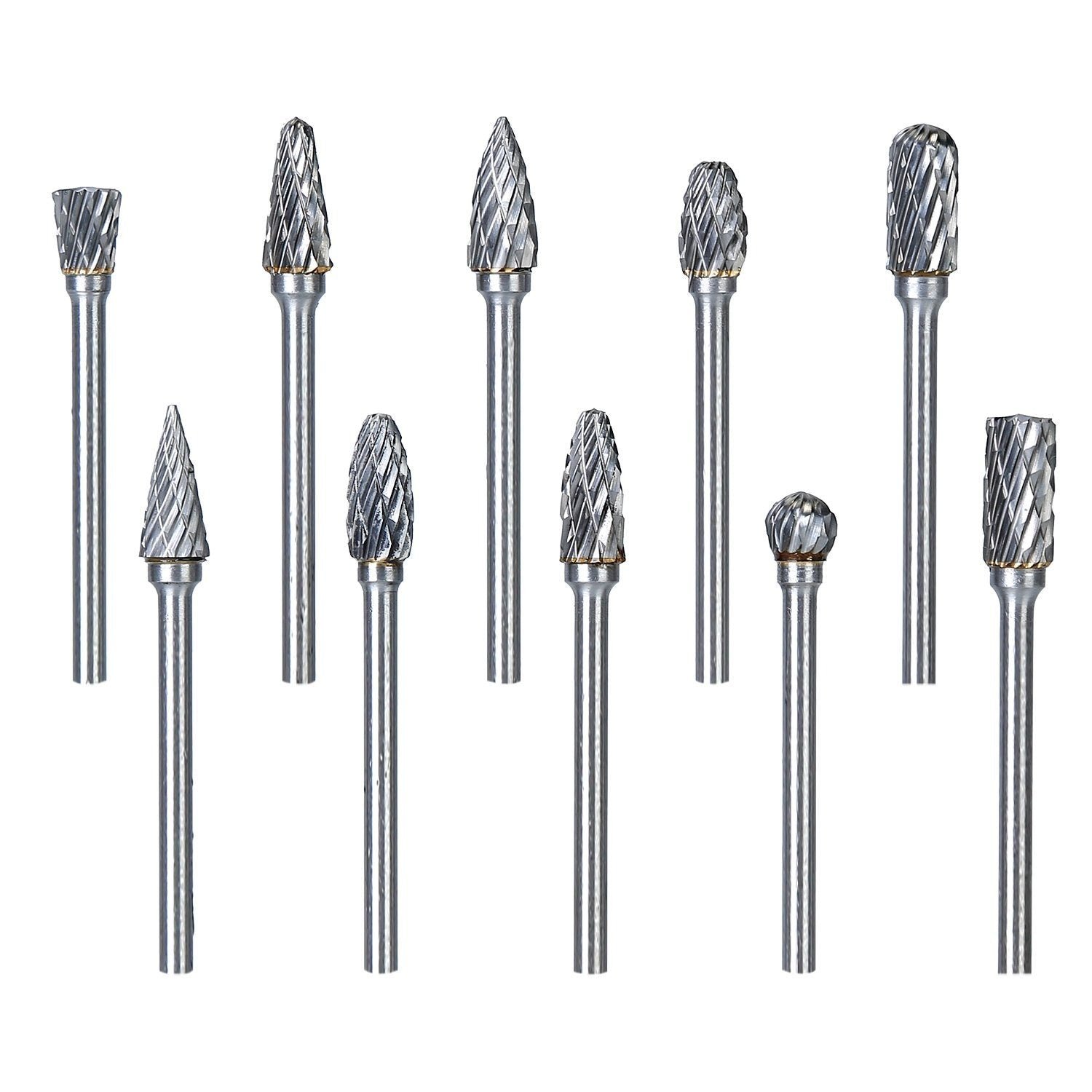 - Premium Material: 10 pieces various shapes rotary burr are made of tungsten steel. with high hardness. sharp and durable. Fits for Dremel and most small rotary tools