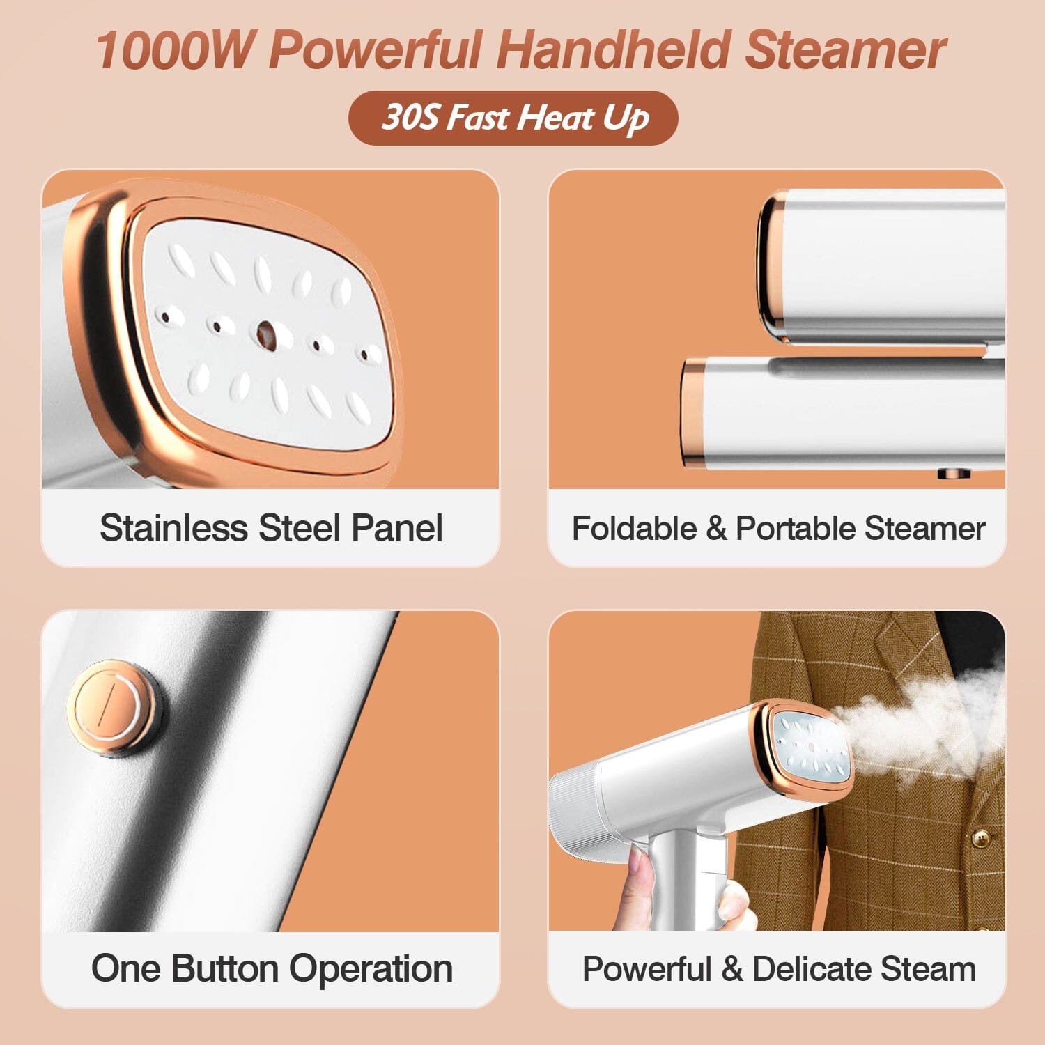 1000W Portable Handheld Clothes Steamer with Brush Foldable