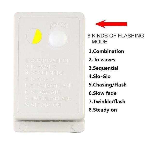 • 8 mode settings: combination. in waves. sequential. slo glow. chasing/flash. slow fade. flash and steady on.