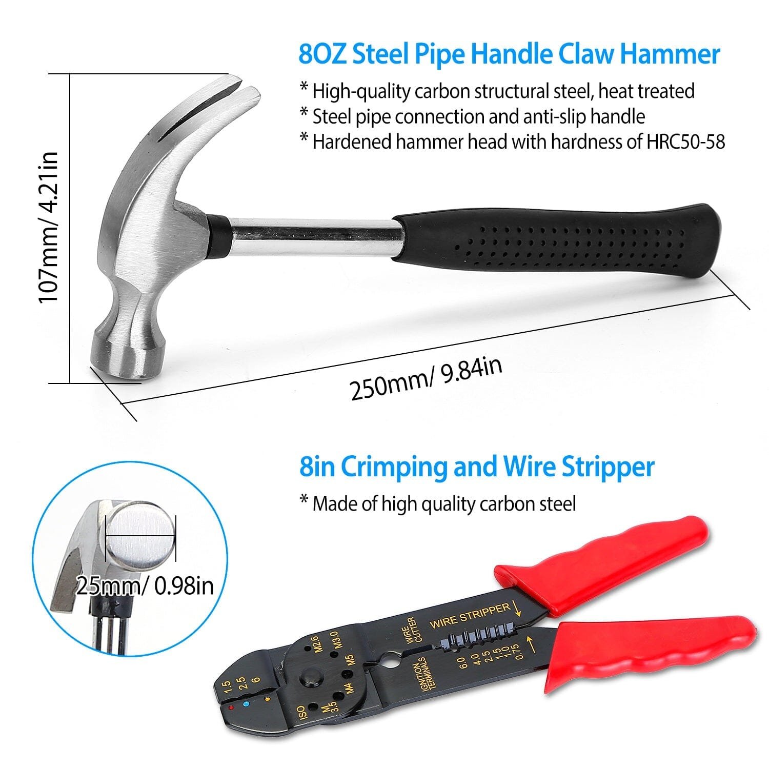 • 1x 8OZ Steel Pipe Handle Claw Hammer