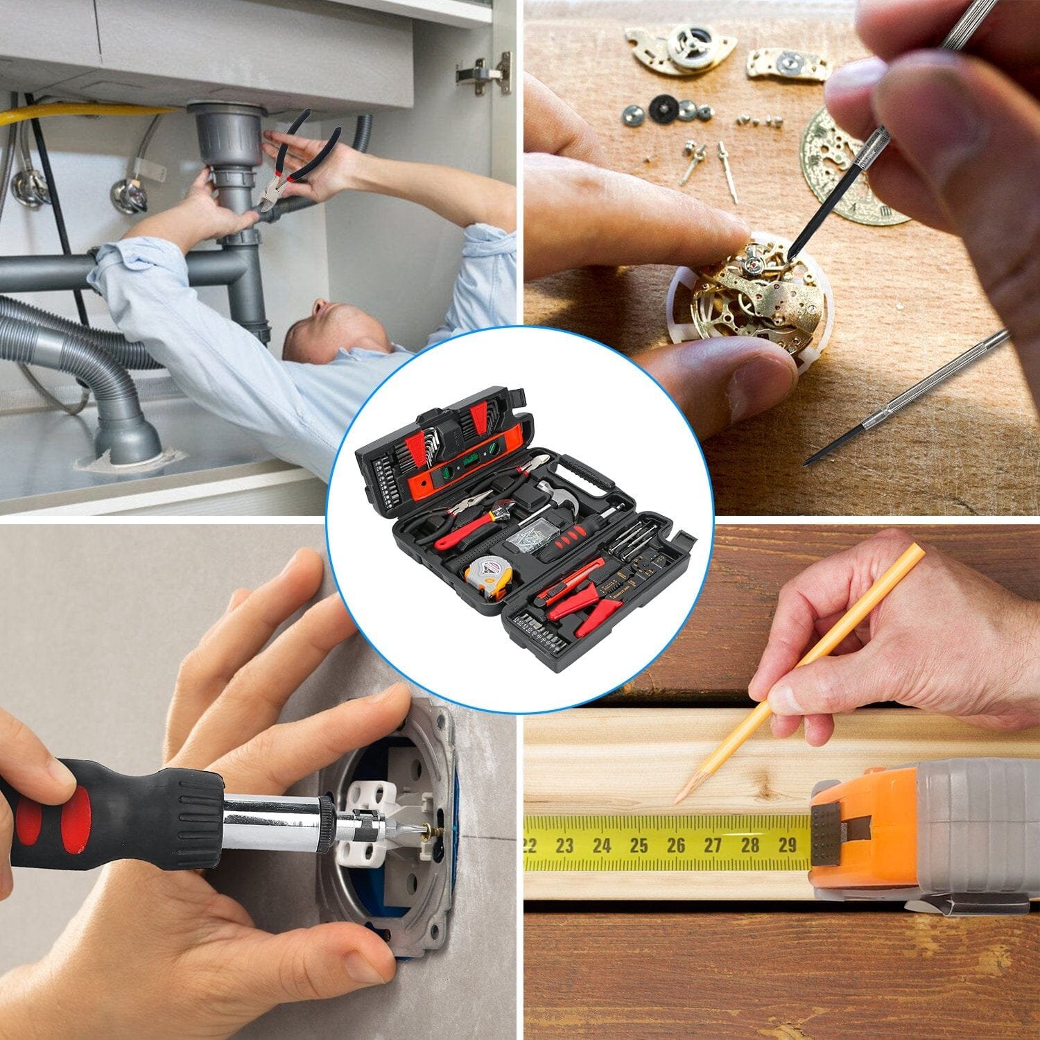 • Wide Application: This Tool Set is ideal for DIY projects or everyday home improvements. and can be used in household and outdoor. for installation and maintenance of small household appliances. furniture. bicycle. water pipe. etc..