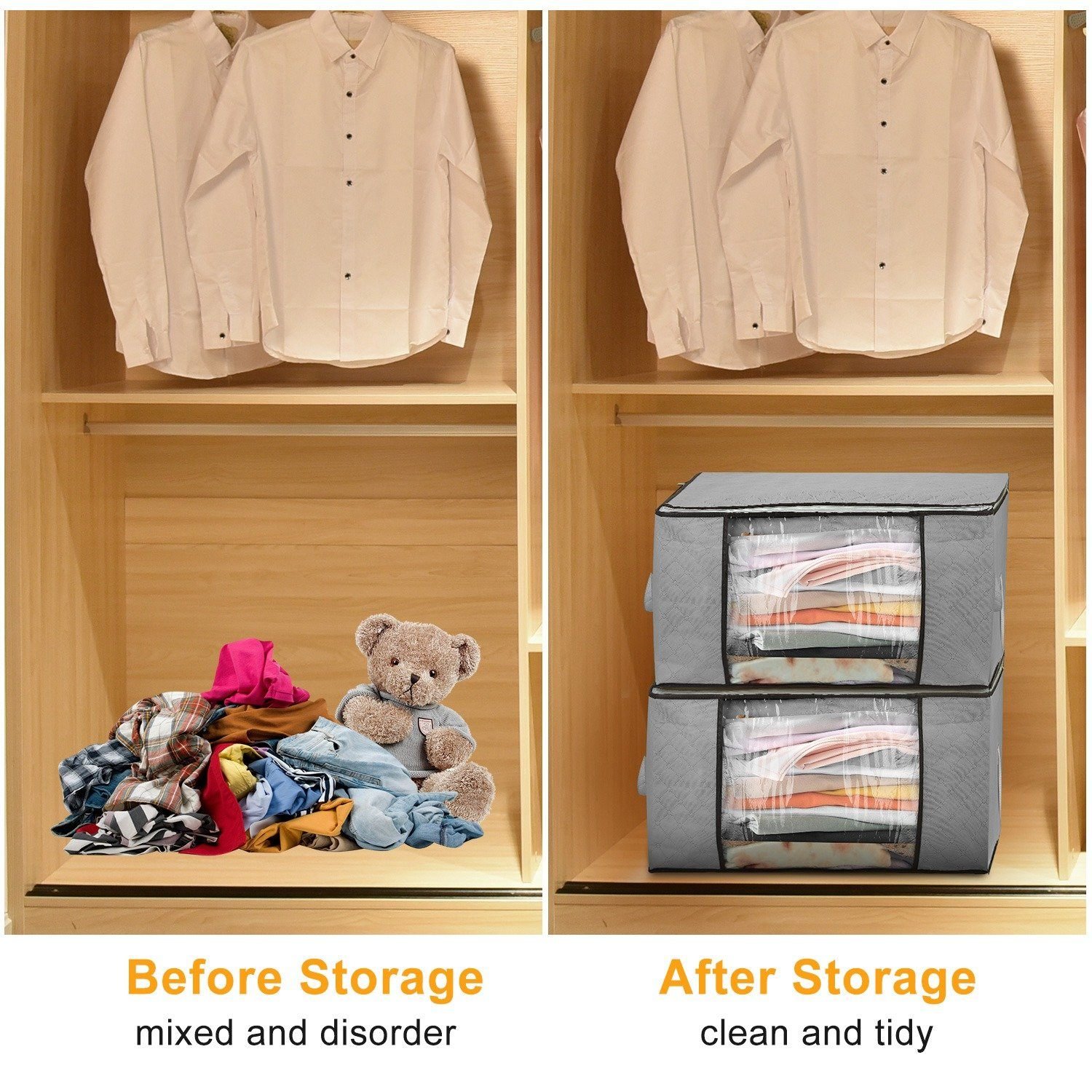 - Versatility in Many Places: The clothes storage bag can be put in closet or under the bed in your house for its foldable feature. It also fits for attic. dormitory. bedroom. basement use and so on. In addition. it is very easy to stored when not in use because it can be folded.