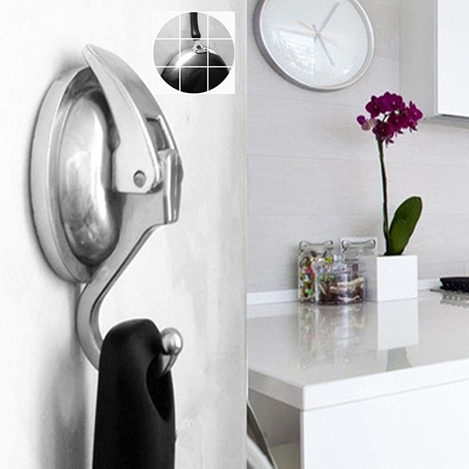 This powerful vacuum suction hook is a great hanger for your Kitchen utensils such as spoon. pan. pot. spatula. ladle. strainer. whisk. cutting board. kitchen towel etc. .and bathroom accessories such as towel. loofah. bathrobe. wreath etc.. or coats. clothes. shopping bag. hat. umbrella etc. in restroom and livingroom.