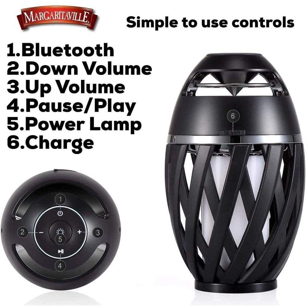 Enjoy the sounds of summer with the MargaritavilleLEDtiki torch Bluetooth speaker. With realistic flame effects and plenty of volumes. you can enjoy your favorite tunes by firelight on any warm summer night. Perfect for patios. decks. tabletops or anywhere you want a little ambiance with your music. The speaker pairs wirelessly over Bluetooth. and with 33 feet of wireless range. and you’ll have plenty of room to get up and dance without losing your connection. Each speaker can be paired up in stereo. to enjoy a fuller. more rich experience.