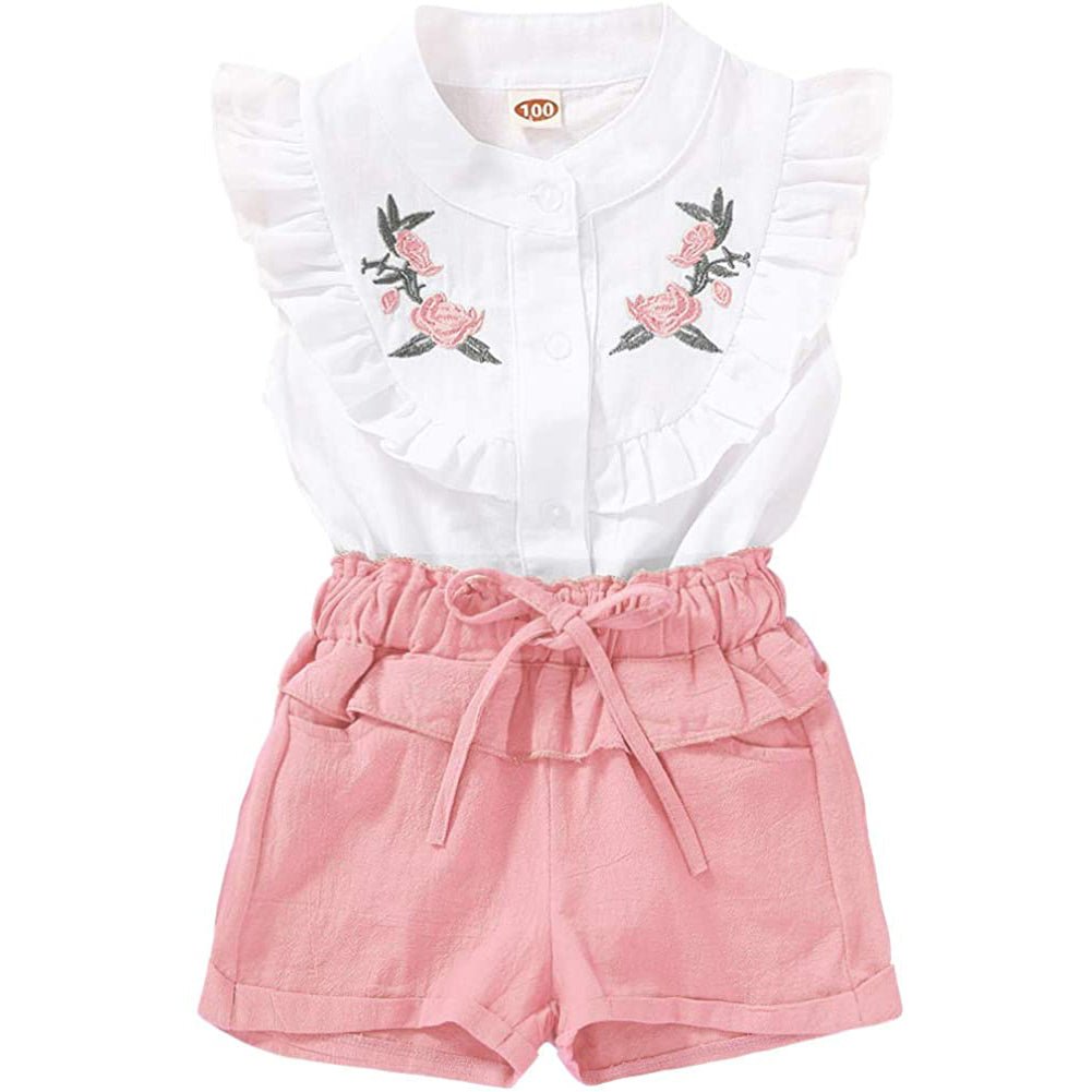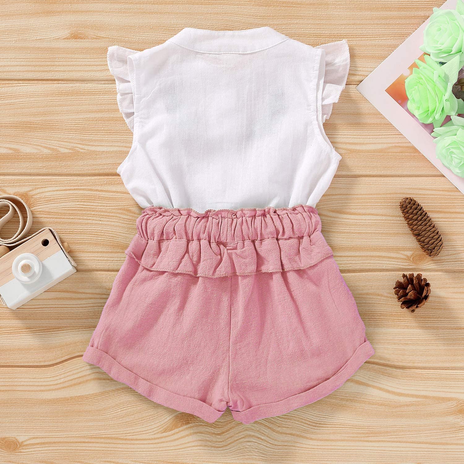 2 Piece SetSet Toddler Kids Baby Girls Outfits Clothes T-Shirt Vest Tops+Shorts Pants.