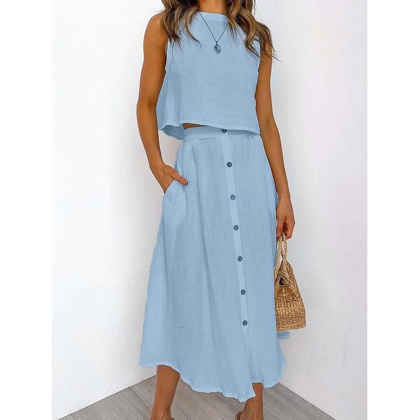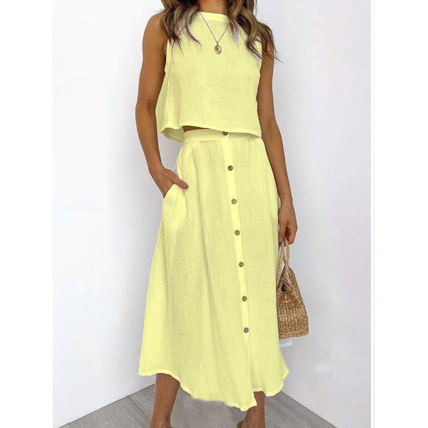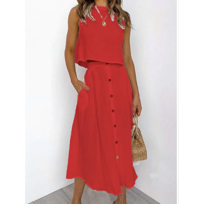 2-Piece Set: Women’s Solid Color Casual Dress