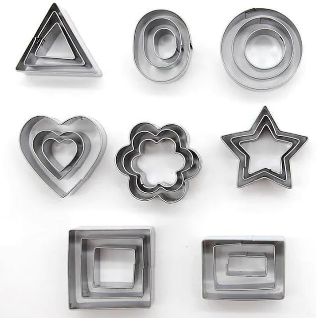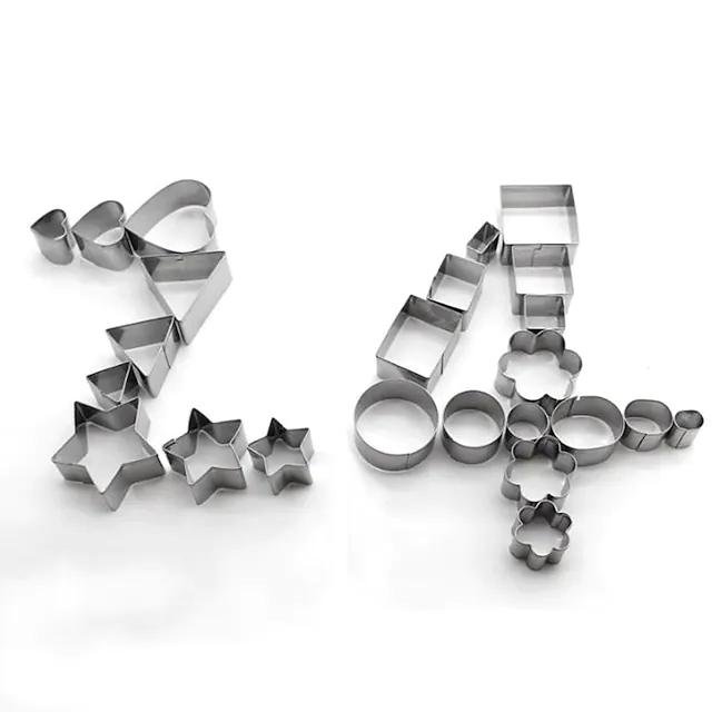 24-Piece Stainless Steel Cookie Cutters Star Heart Flower Round Shape Biscuit Molds Fondant Clay Cutters Baking Molds
