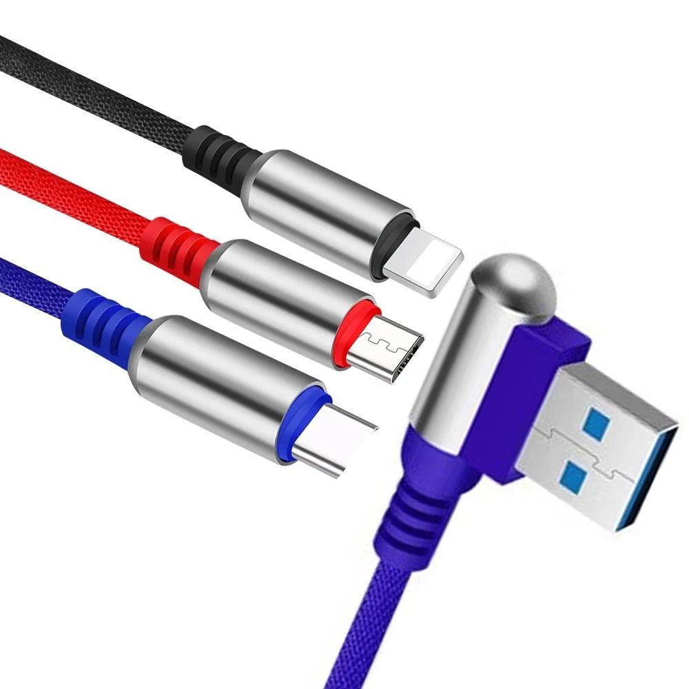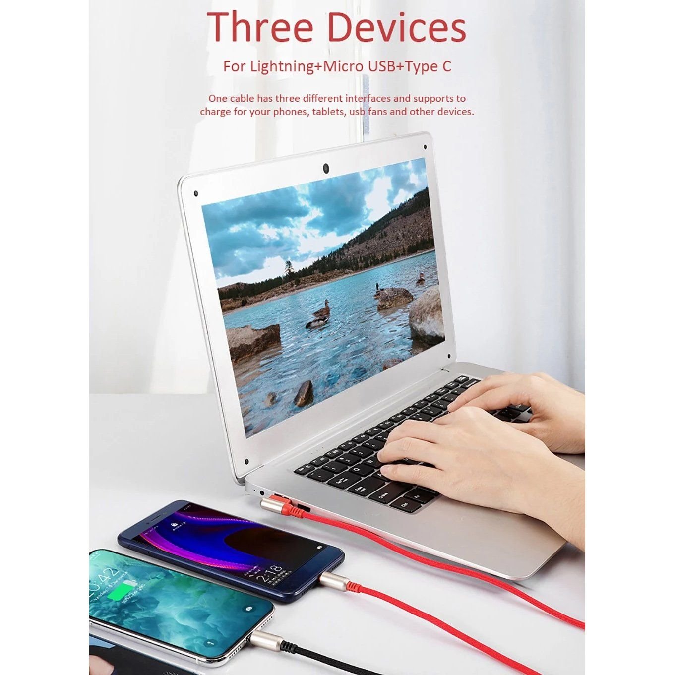 3-In-1 Charging Cable USB to Micro USB + Type C + Lightning Charging Cable Fast Charging