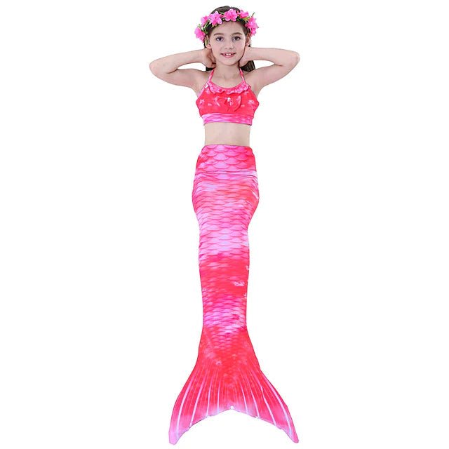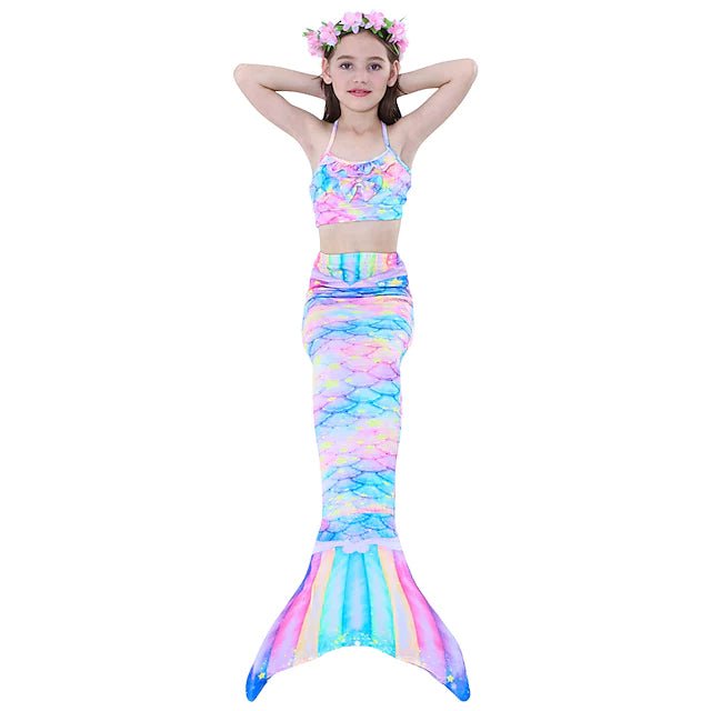 Kids Girls» Swimwear Bikini 3pcs Three Piece Swimsuit Mermaid Tail The Little Mermaid Swimwear Gradient Sleeveless Beach Active Cosplay Costumes Bathing Suits