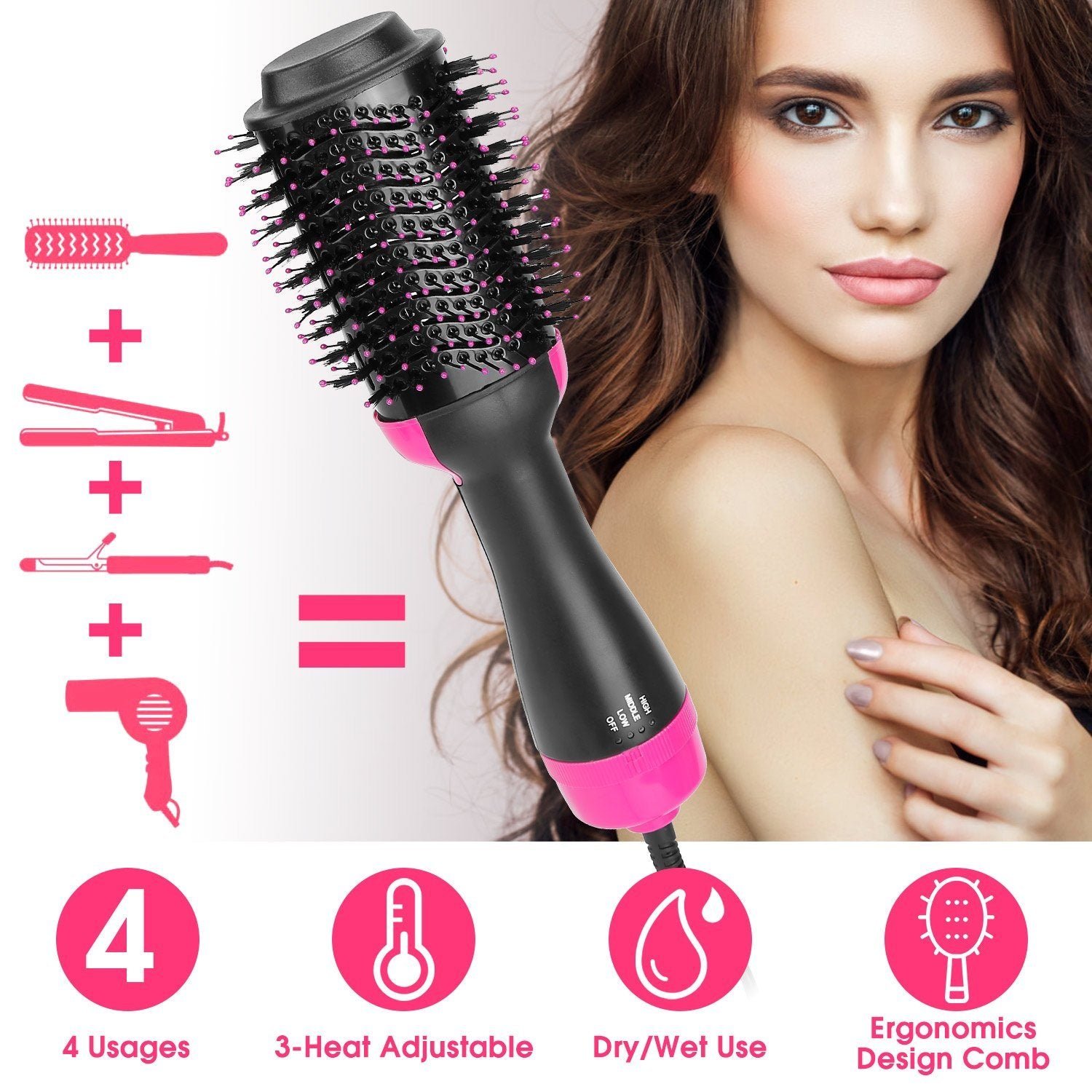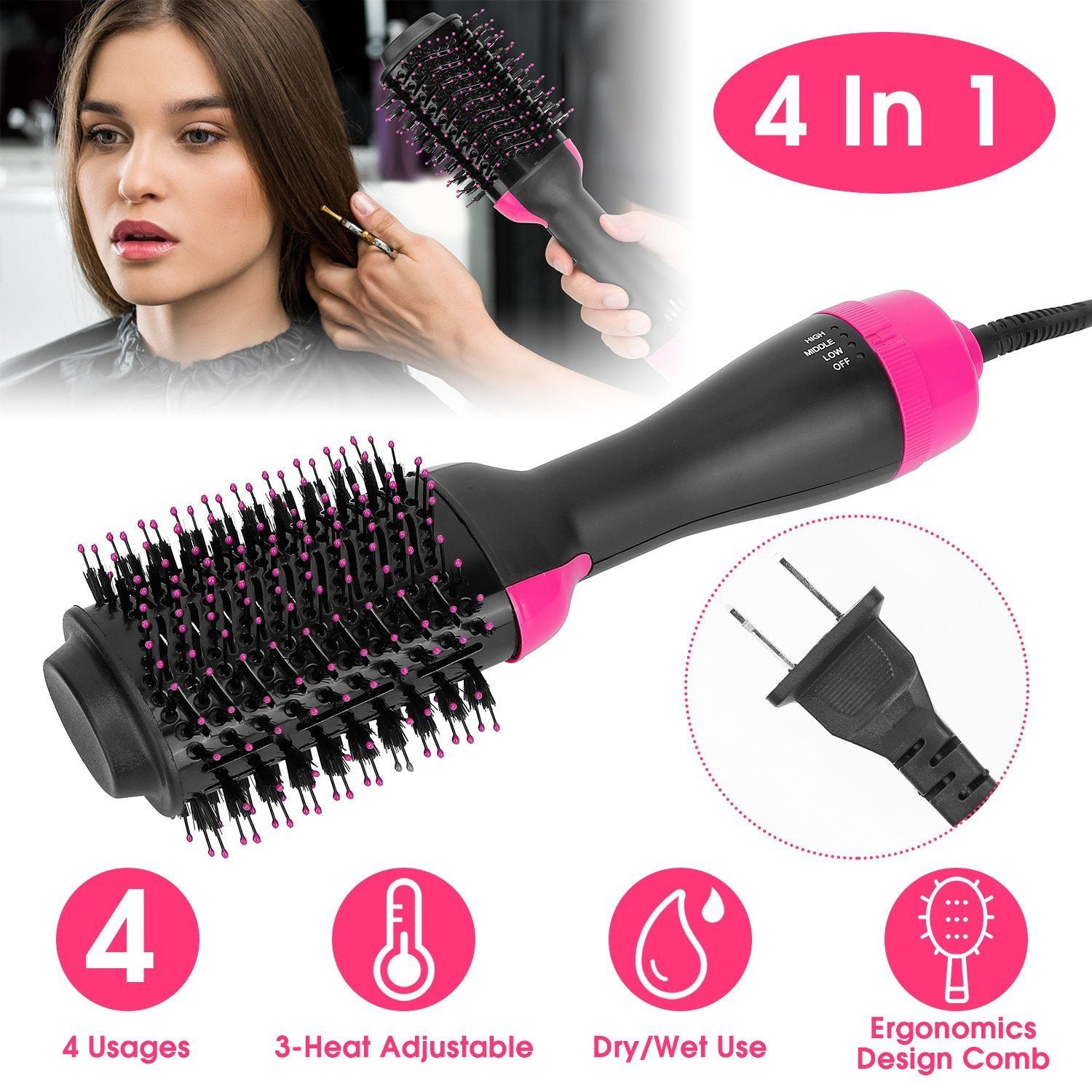 - 4-In-1 Multifunction: This 4-in-1 hair dryer comb is the great combination of dryer. curler. straighter and comb. providing you various hair styles.