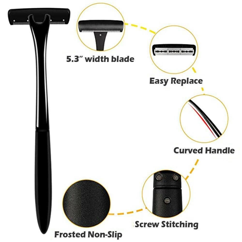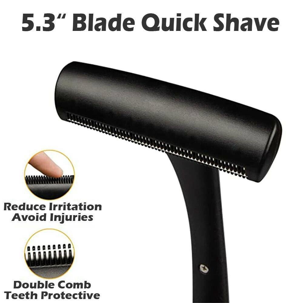 The manual back shaver designed to work in both wet and dry situations. It is made of stainless steel standard blades and PVC. covered with waterproof coating.