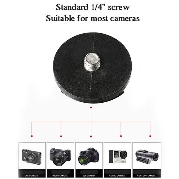 With standard 1/4 inch screw. suitable for most cameras such as card digital camera. micro single camera. SLR camera. GoPro motion camera. CONTOUR motion camera. etc.