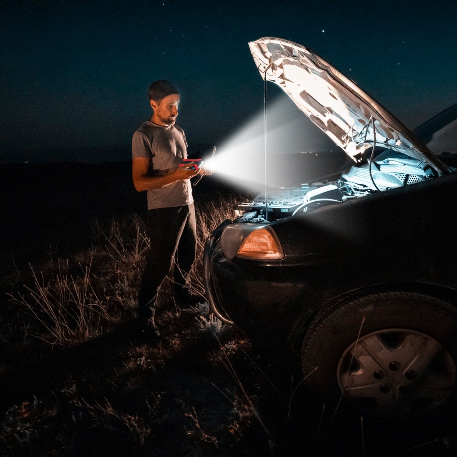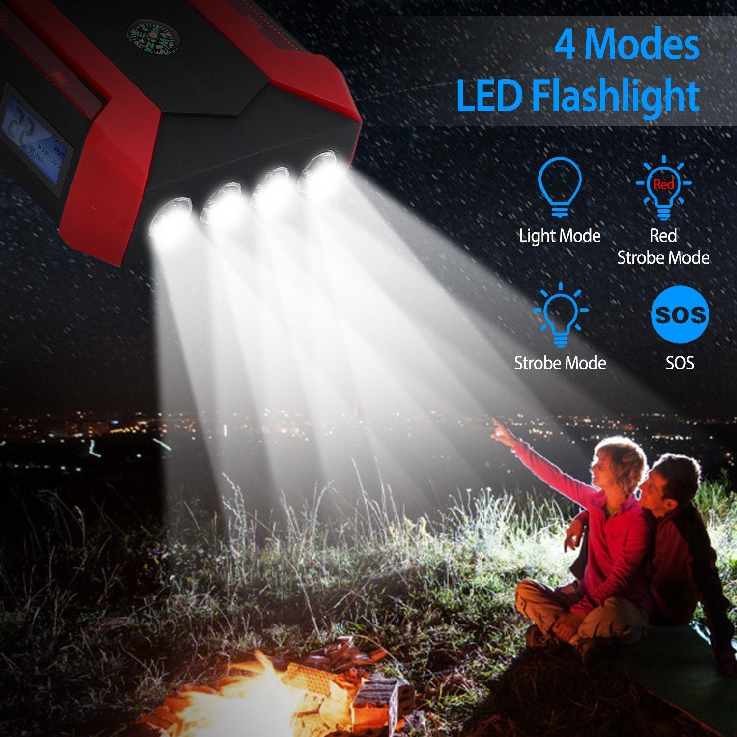 - Emergency Led Flashlight: Not only as a car booster but also as an emergency flashlight when you are in an emergency situation. It has 4 modes: normal light. strobe light. SOS light and red strobe light. It can fit your different needs.