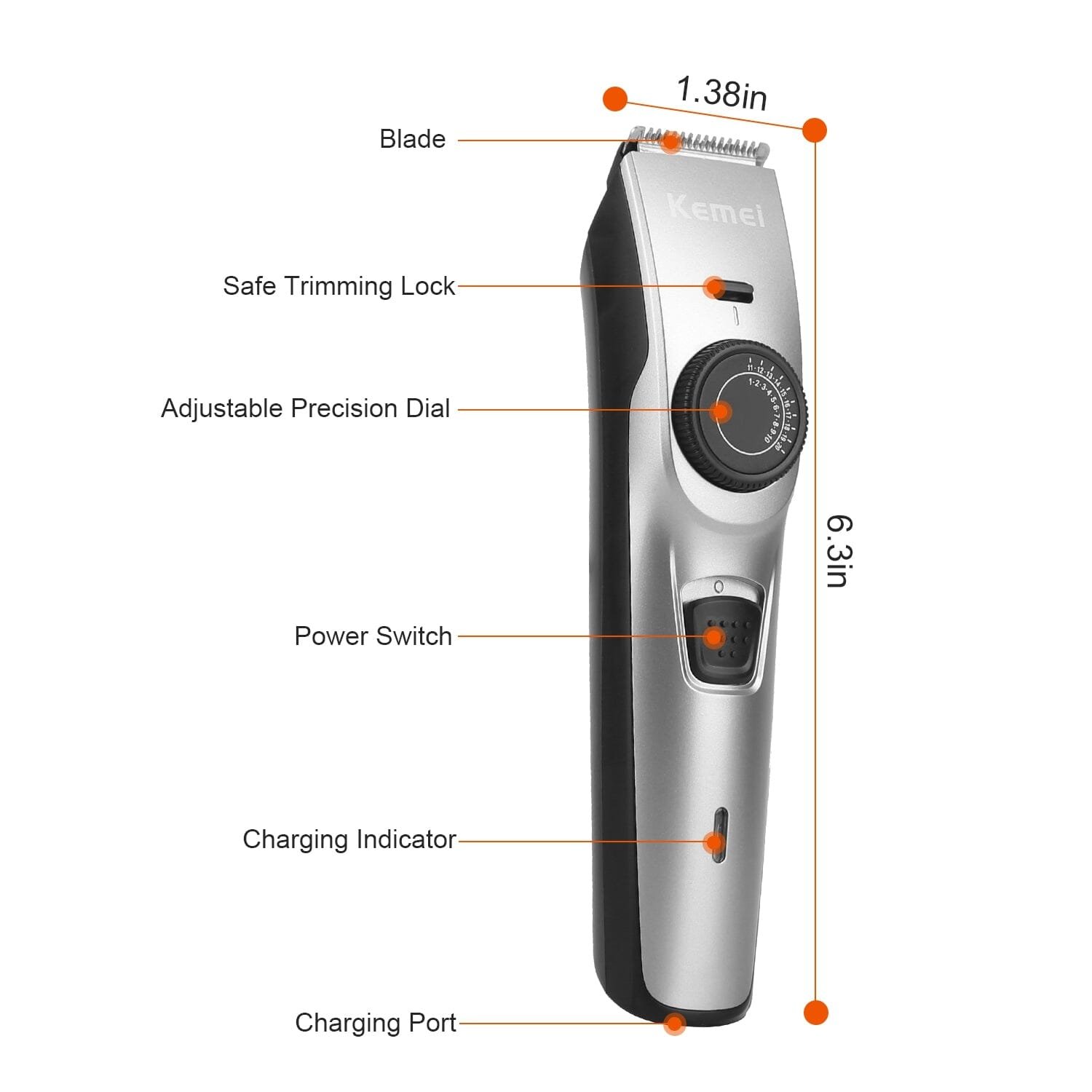 • Powerful Motor: Equipped with a powerful motor. the hair clipper can work faster. smoother and more efficient at work with less heat and low noise for a comfortable trimming trip.