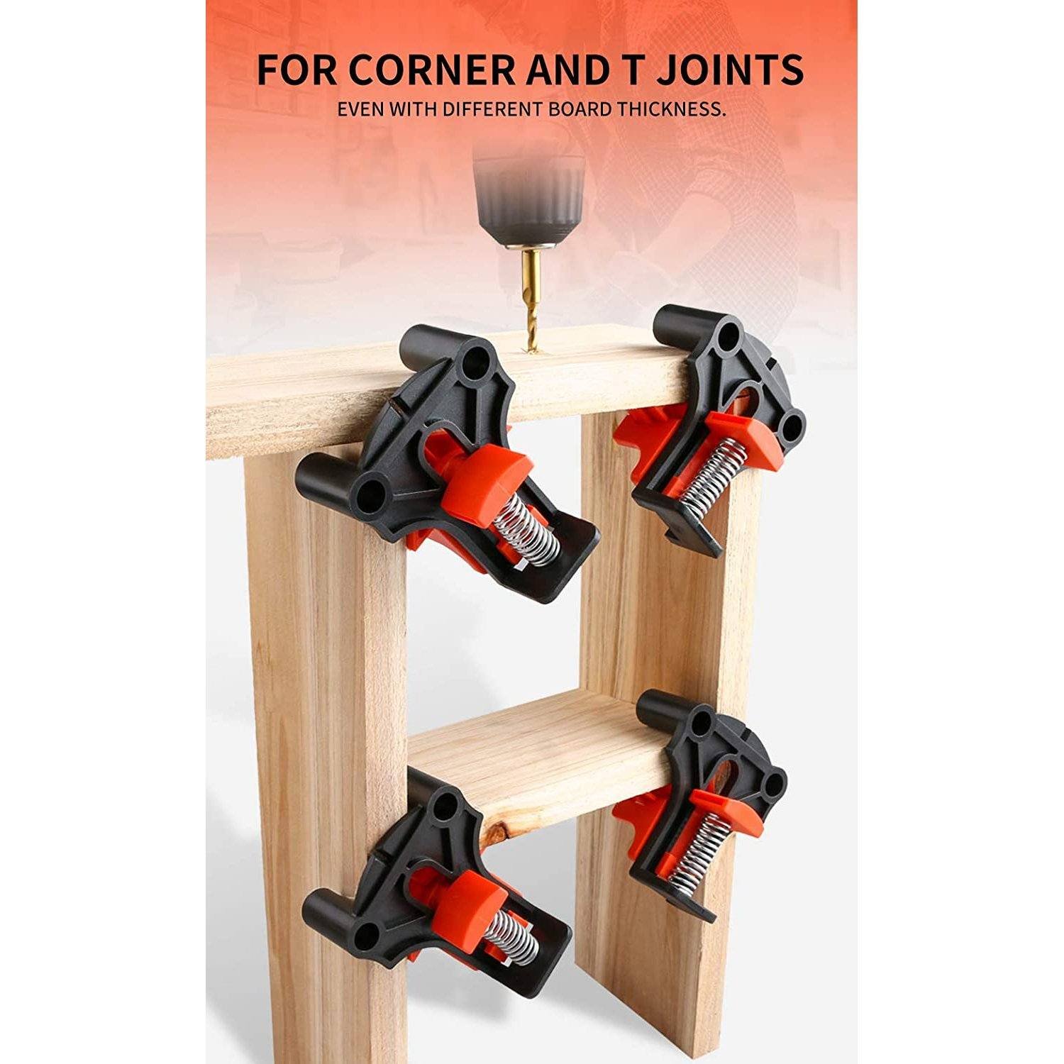 • Wide Application: This angle clamps kit is designed not only for wooden DIY project (square boxes. drawers. cabinets. frames. furniture cabinets). but also for all solid material such as metal/steel. glass. plastic. perfect for aligning. nailing. woodworking. welding. screwing. making cabinets. box. and picture frames. assemble bookshelves.