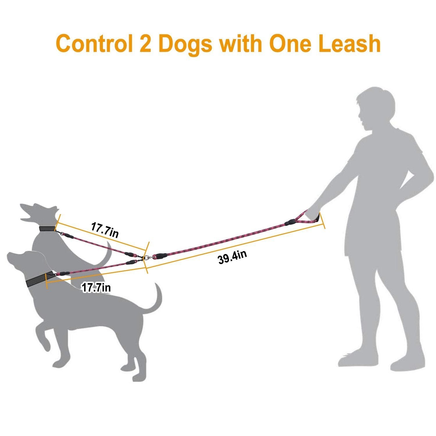- No need to use 2 separate leashes while walking 2 dogs. You can walk and control 2 dogs at once while maintaining safe control over both! Free up one of your hands and control both dogs.