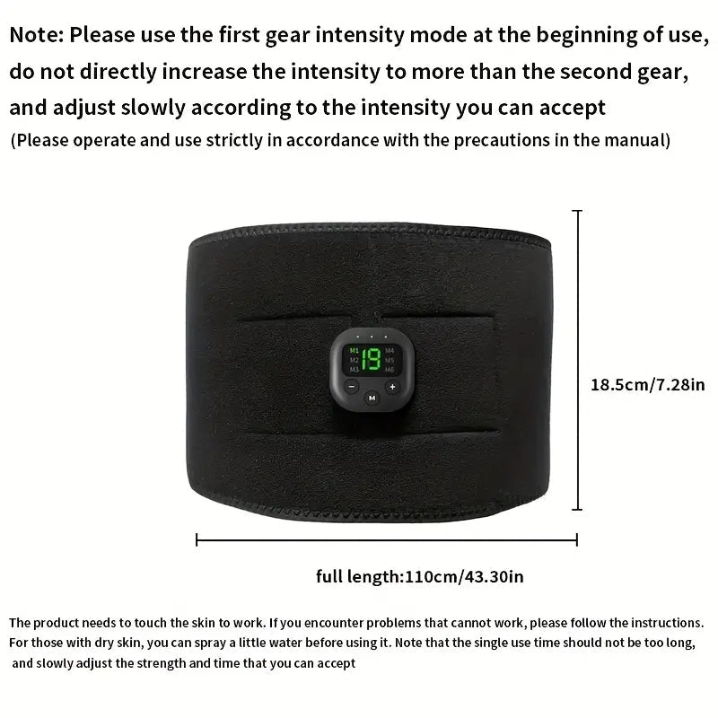 - Multifunctional Abdominal Belt: 6 modes. 19 levels of intensity. timing function. automatic shutdown. complete functions.