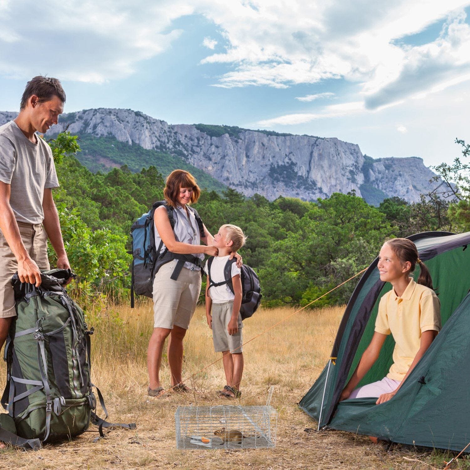 This is a sturdy and fantastic humane mouse or critter trap. You set the trap from the outside of the cage. Then drop some sunflower seeds through the top of the cage without having to put your hands inside no matter when used indoor or outdoor. or bait it with snacks attractant to trap voles. squirrels. chipmunks. mice. rats. weasels and other similar size animals. Additional rear door lock hook and latch followed by gravity once triggering completely prevents captive animals from escaping from the door. It is also easy to set the target caught animal free just by re-setting the trap. All sets in seconds. Spacious capacity can hold dual mice at the same time.