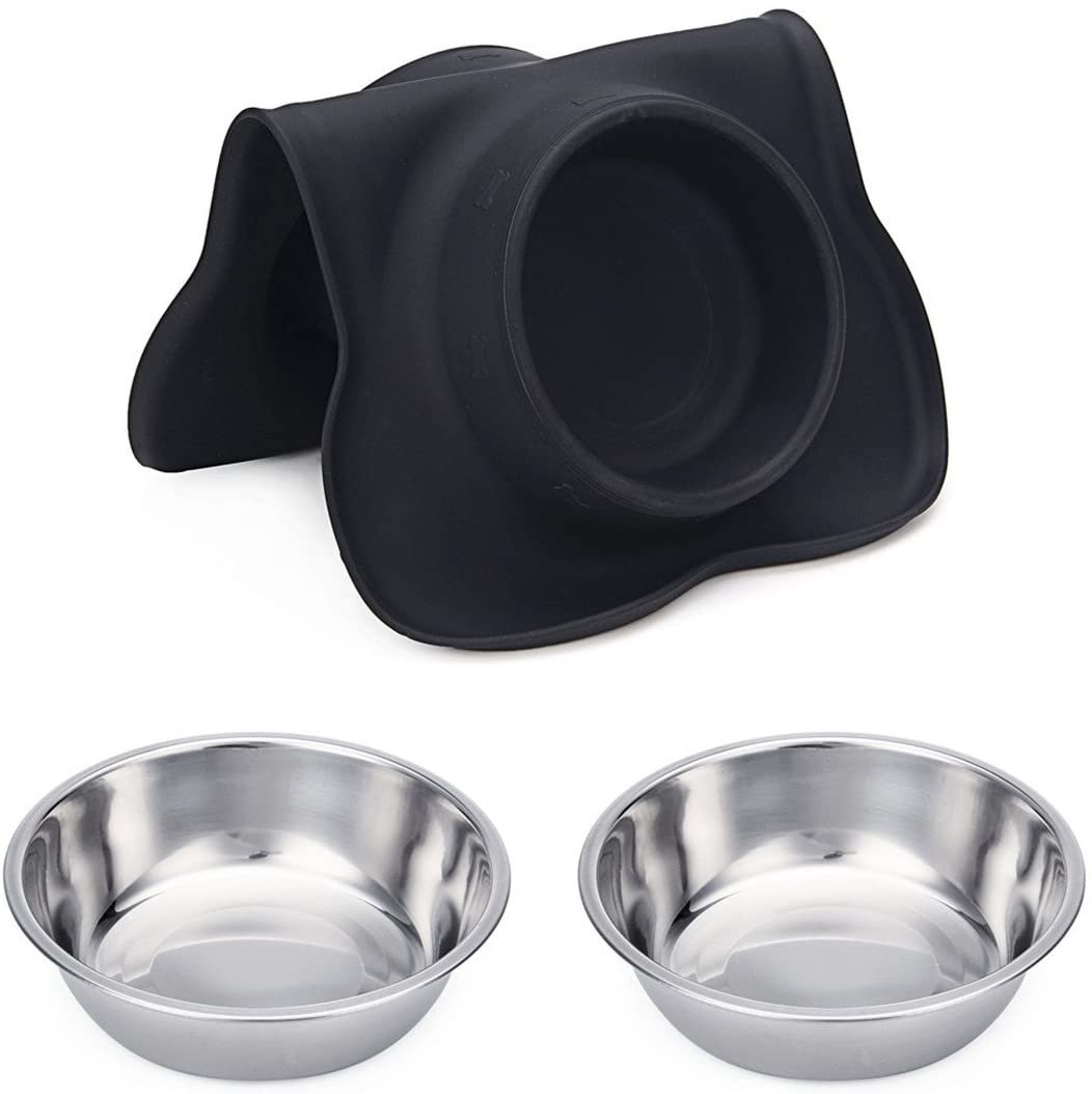 Hubulk 2 Stainless Steel Dog Bowl with No Spill Non-Skid Silicone Mat