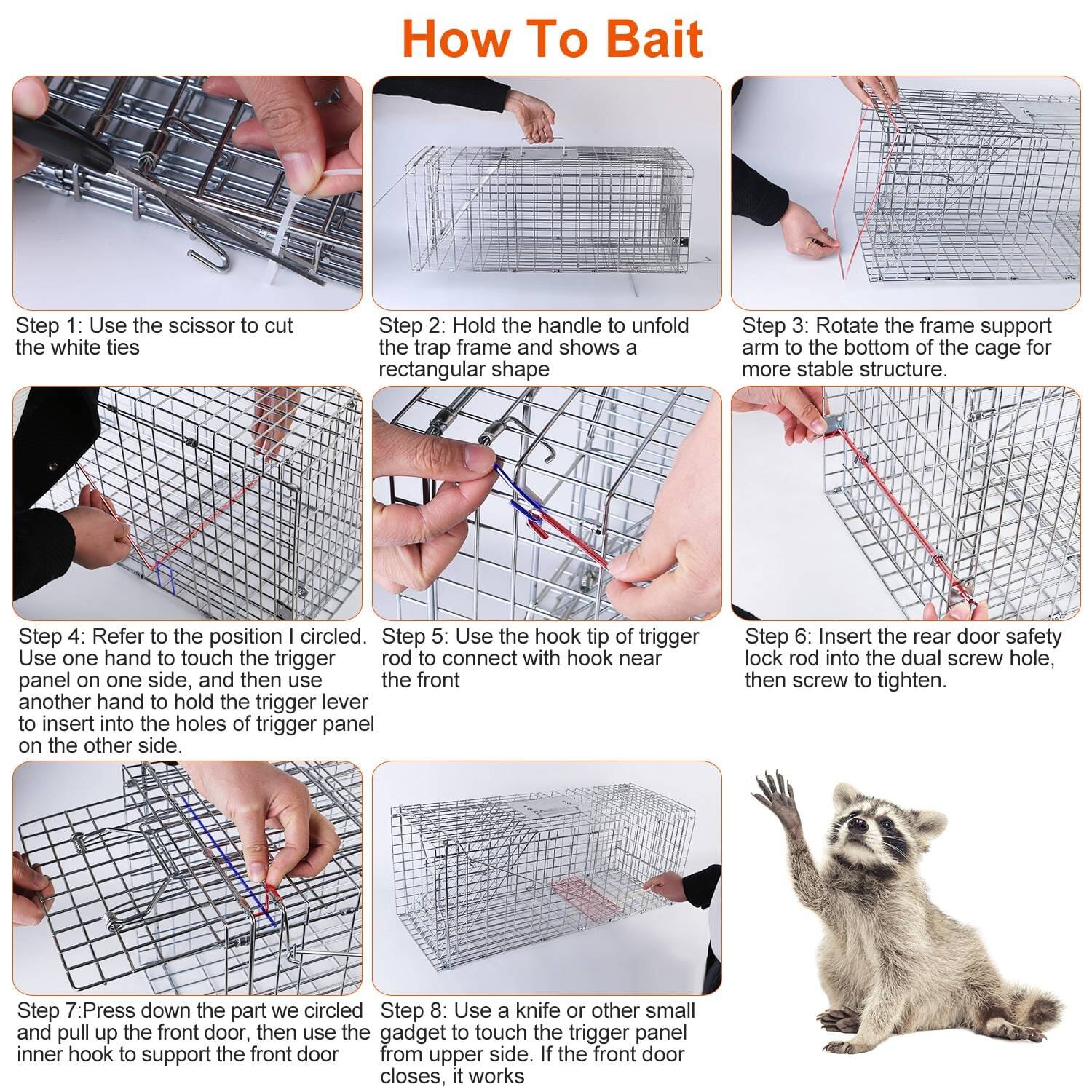 - Humane Trap Cage: Come with sensitive trigger and front spring door. the animal only needs to touch the pedal gently. then the trap can be triggered immediately and door will be closed immediately. This ensures that animals cannot escape. Also come with a rear door. you can release animal if you want.