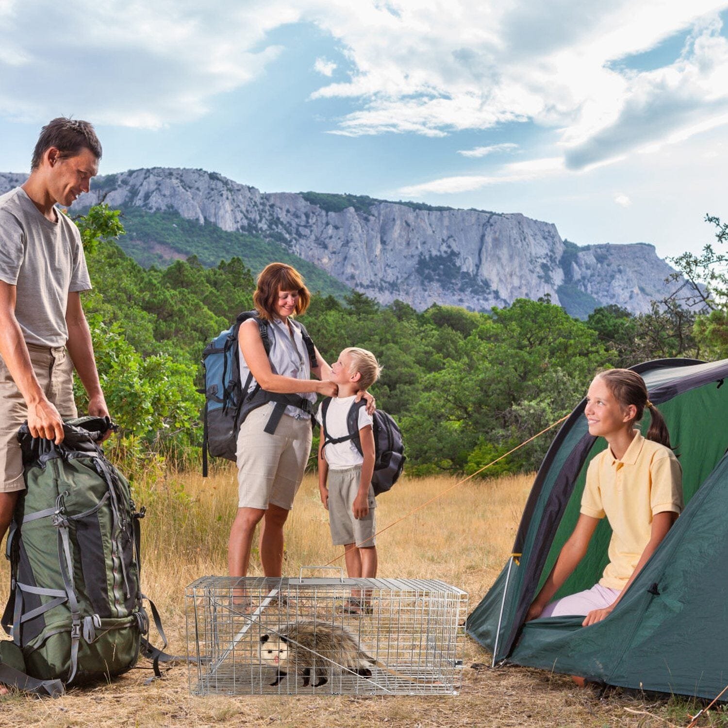 - Easy To Setup & Use: Mesh openings are smaller than competing traps of comparable size to prevent escapes and stolen bait. Easy to use. bait. set & release. No chemicals or glues. this cage can be used indoors or outdoors. Collapsible cage is space saving and can be carried out easily. Dual handles provide more stability when carrying the cage.
