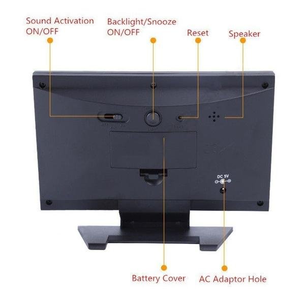 - Voice-activated backlight function: Press the LIGHT button to turn on the backlight. or turn the light on within 1 meter. or tap the table to turn on the backlight. The light is turned off for 5 seconds. It is convenient for nighttime viewing time.