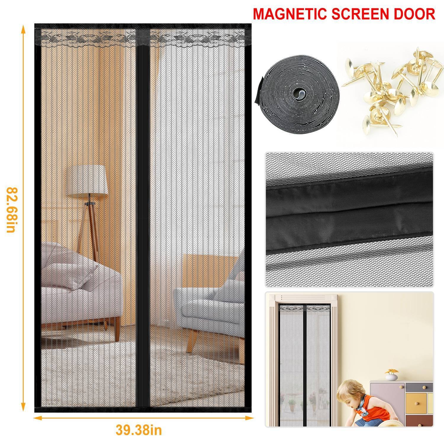 - Open Easily & Close Seamlessly: Equipped with 16 pairs strong magnetic cubes and magnet strips. the screen door with magnets can open easily and close seamlessly. which allow your kids or pets to go in and out so you don’t need to open the door for him each time.